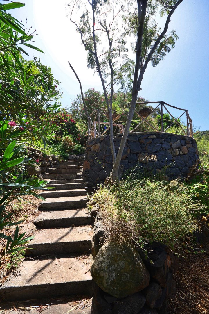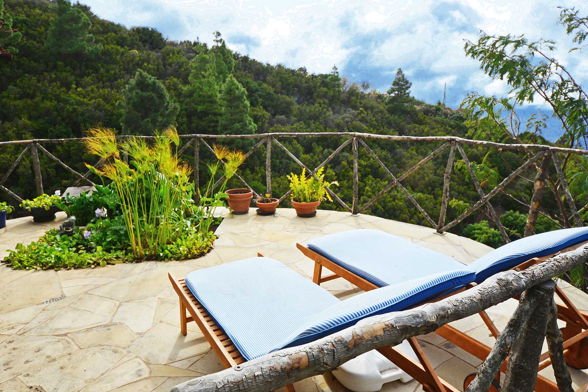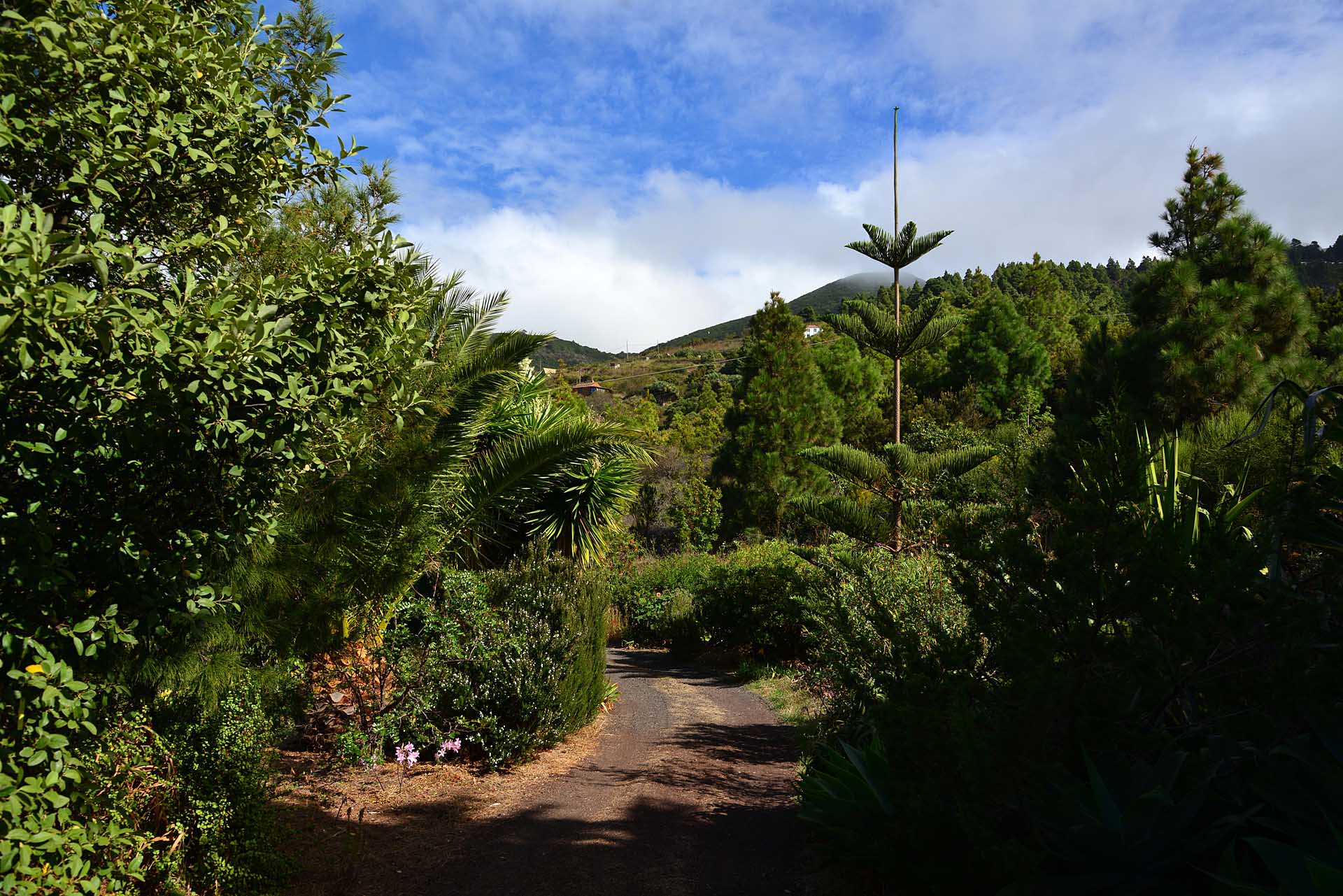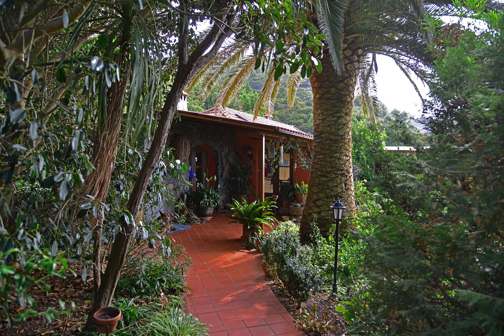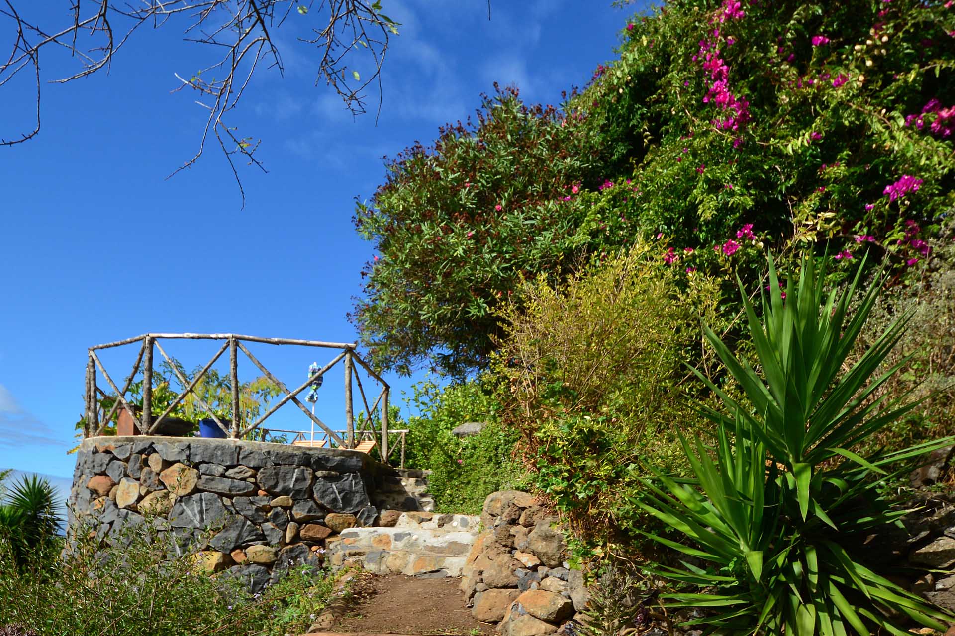 Wenn Sie absolute Ruhe suchen und naturverbunden sind wird Sie diese Finca etwas oberhalb von Santo Domingo begeistern. Schon die Zufahrt vom historischen Ortskern entlang einer großen Schlucht durch die wildromantische Landschaft des Nordwestens ist ein Naturerlebnis. Das parkähnlich angelegte Grundstück (ca. 5.500 m²) mit vielen heimischen und exotischen Bäumen (unter anderen Mandel, Avocado, Orangen, Pink Grapefruit, Zitrone, Mango, Papaya, Mandarine, Apfel (verschiedene Sorten), Birne, Kirsche, Kanarische Kirschbaum, Feigen (Weiß & Rot), Mispeln, Cherimoya, Feijoa, Granatapfel, Trauben, Pepin (Birnenmelone), Maulbeere, Holunder, Haselnuss, Kiwi, Pfirsich, Nektarinen, Physalis, Scharon (Kaki), Pecannuss, Sapote lucuma, Spote Blanco, Karob, Macadamia, Echte Guave, Erdbeerguave, Kapuzinerkresse, Kaktusfeige, Banane, Quitten, Pfefferbaum, Moringa, Tamarillo, Philodendron, Baumaloe, Aloe Vera, Zuckerrohr...), Terrassen, Aussichtspunkten und Rasenflächen erinnert an einen botanischen Garten mit hohem Freizeitwert. Am Fuße eines Südhangs finden sich eine Vielzahl gut tragender Fruchtbäume, die die Reflektionswärme der Felswand in süße Fruchtträume umsetzen.