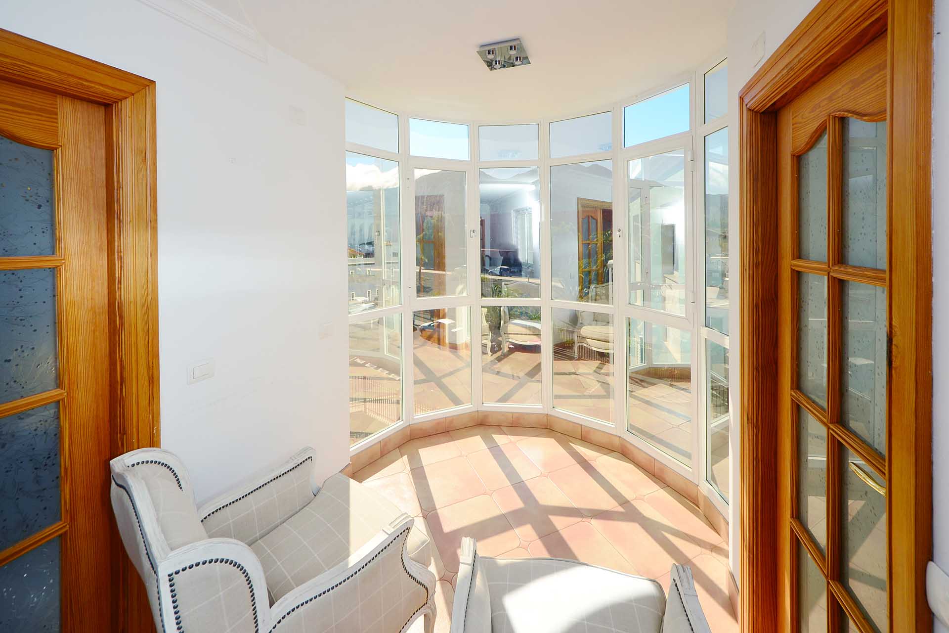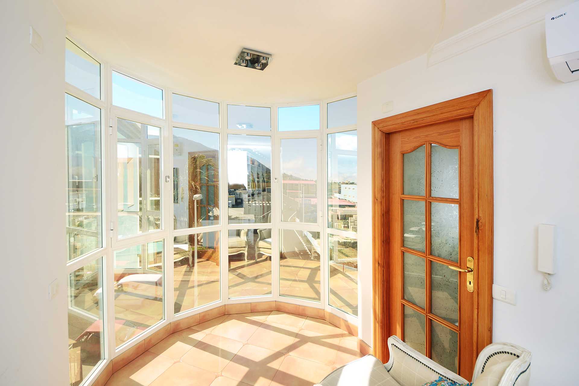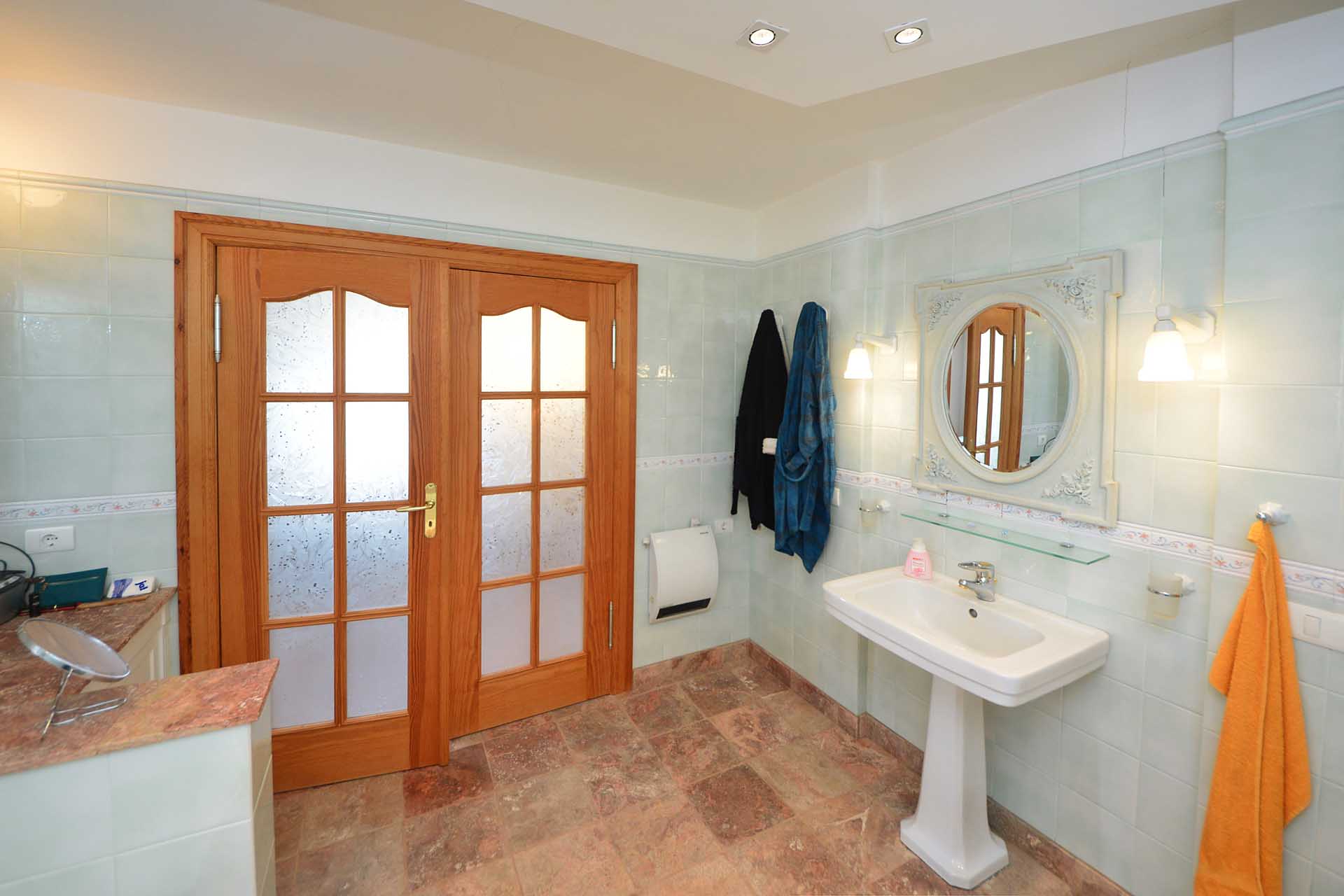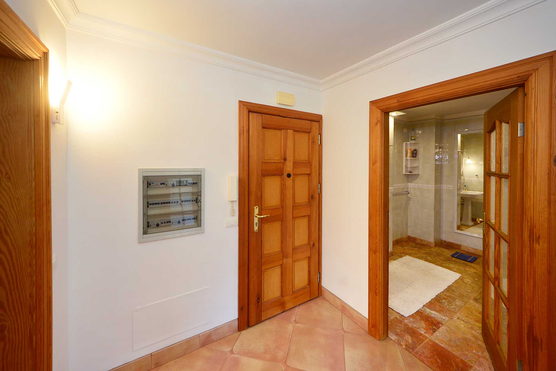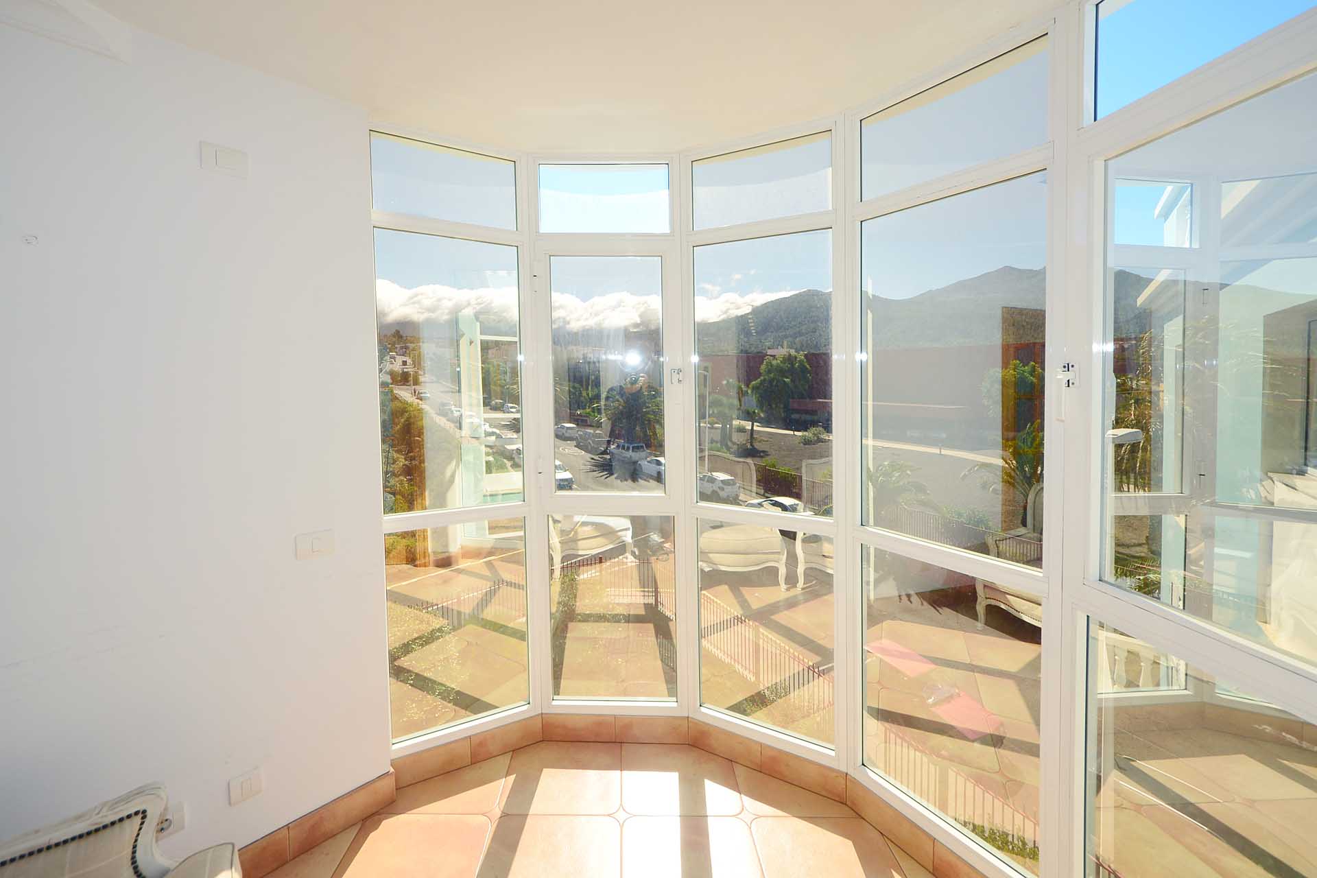 Man sieht der Wohnung an, dass sie nach den Wünschen eines deutschen Handwerkers errichtet und ihr Grundriss nach nordeuropäischen Bedürfnissen konzipiert wurde. Eigentlich waren in diesem Stockwerk zwei Wohnungen vorgesehen, diese wurden zu einer großen Wohnung umgeplant, dafür die Wände mit doppelschaligem Mauerwerk versehen und doppelverglaste Dreh-Kipp-Fenster eingebaut. Auch wurden sämtliche Zimmer größer ausgeführt, als in Spanien eigentlich üblich und so entstand eine sehr großzügige Wohneinheit, die an nichts zu wünschen übrig lässt: Eine große Küche mit Essplatz, dessen bodentief, durchgängig verglaster Erker den Blick in die Berge und bis zum Meer schweifen lässt, ein sehr großes Wohnzimmer (ca. 40 m²) mit Kamin, ein Lesezimmer, drei Schlafzimmer, zwei Bäder, zwei Dielen, ein Hauswirtschaftsraum, eine Speisekammer, zwei große, überdachte Balkone, ein Ankleide- und/oder Mehrzweckraum bieten auch kreativen Menschen oder Paaren, die häufiger Besuch empfangen ausreichend Platz für alle Bedürfnisse.