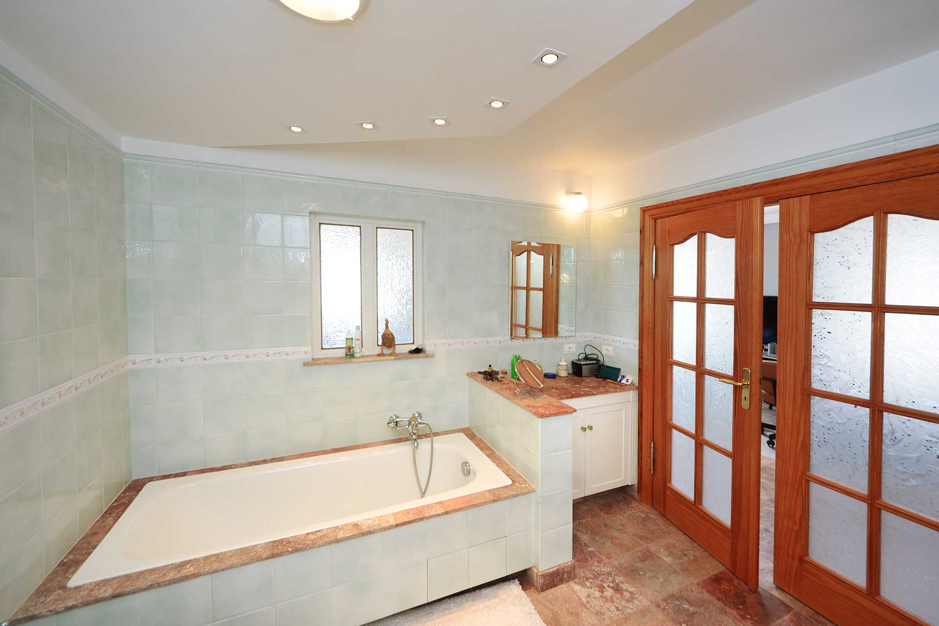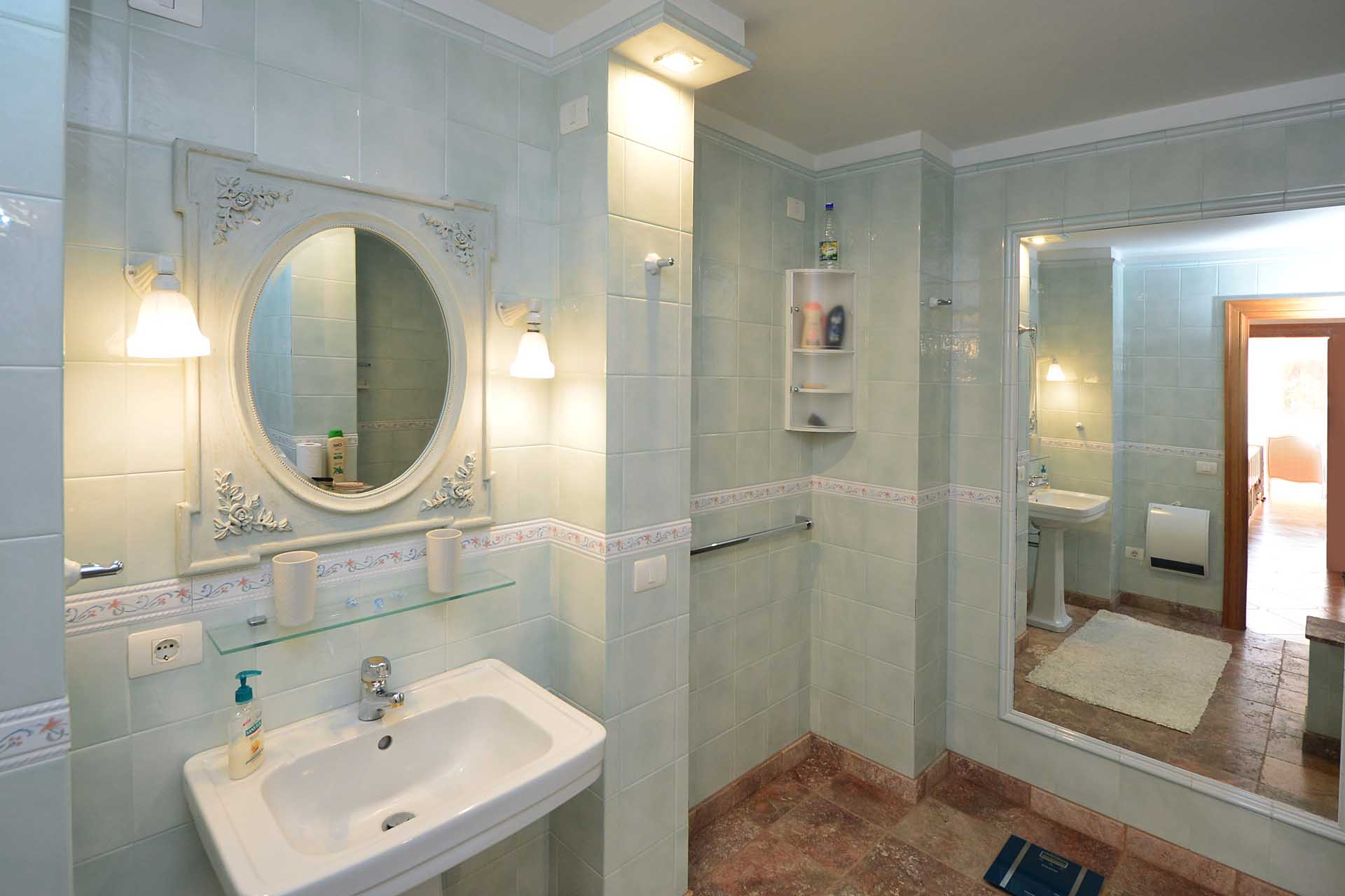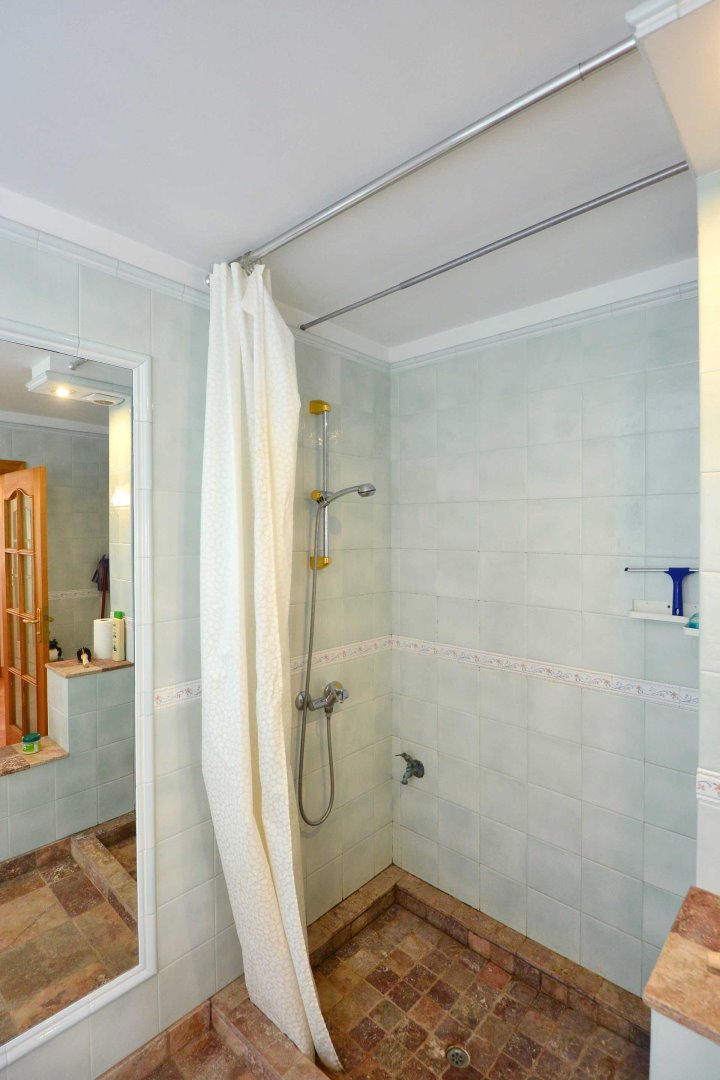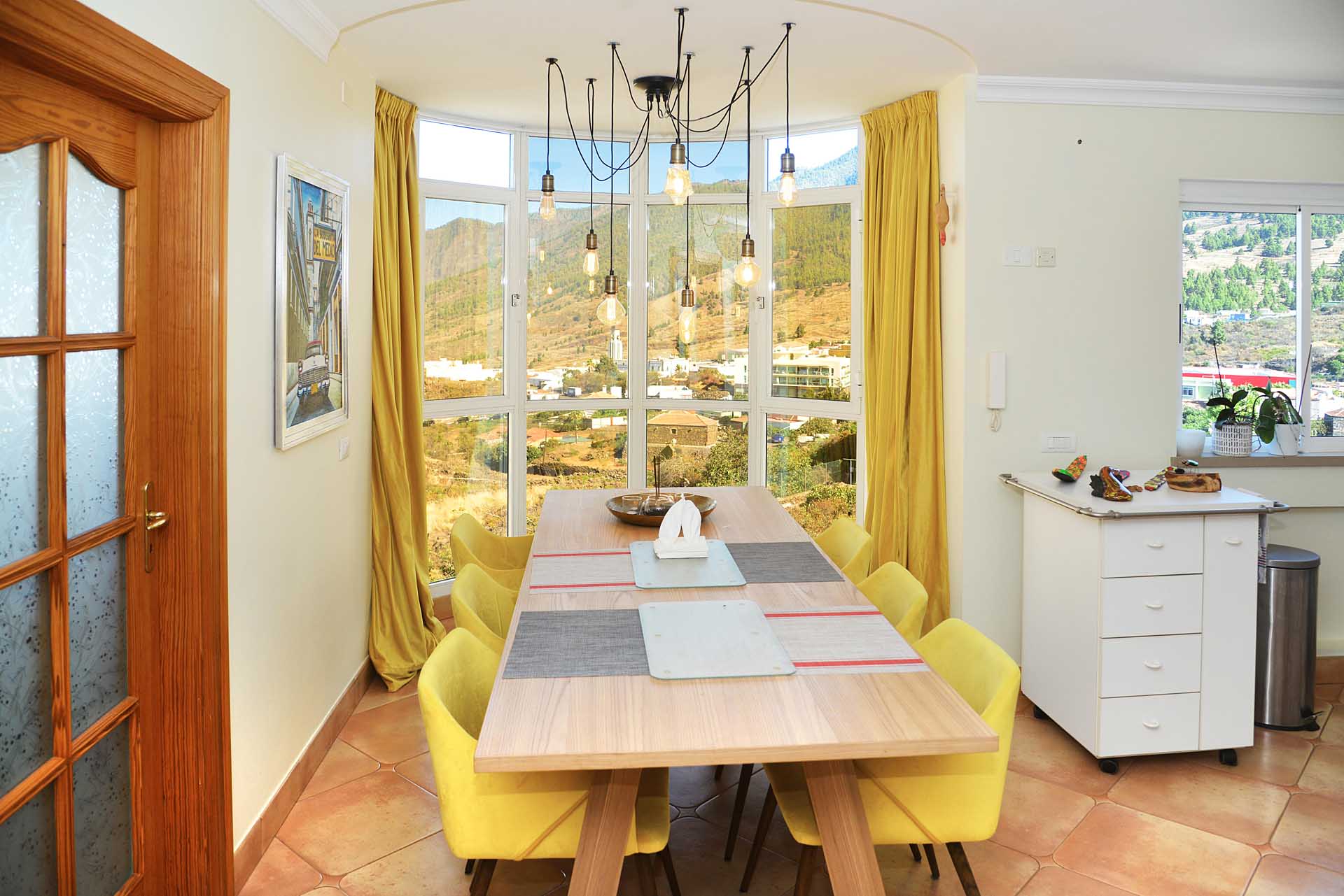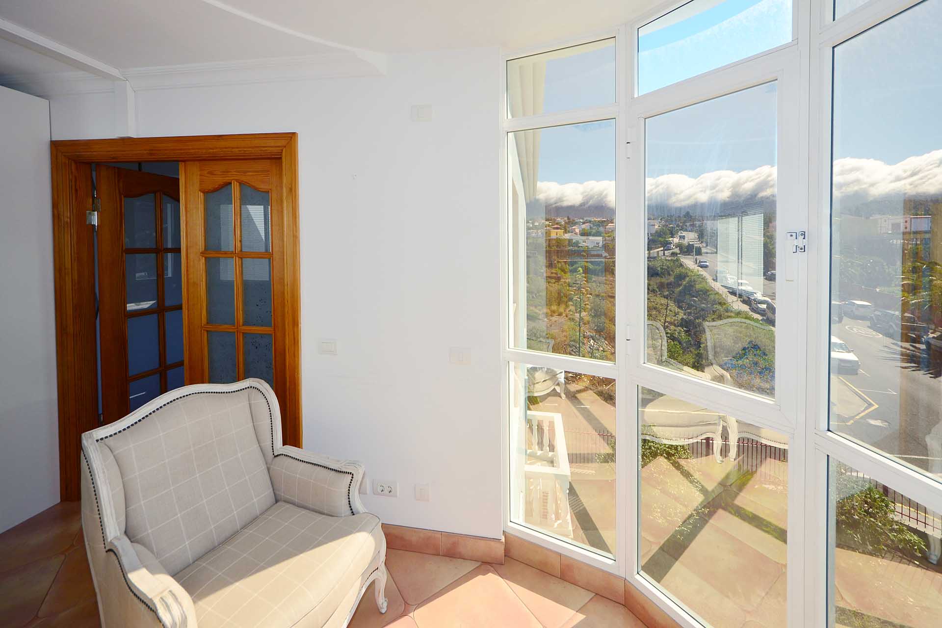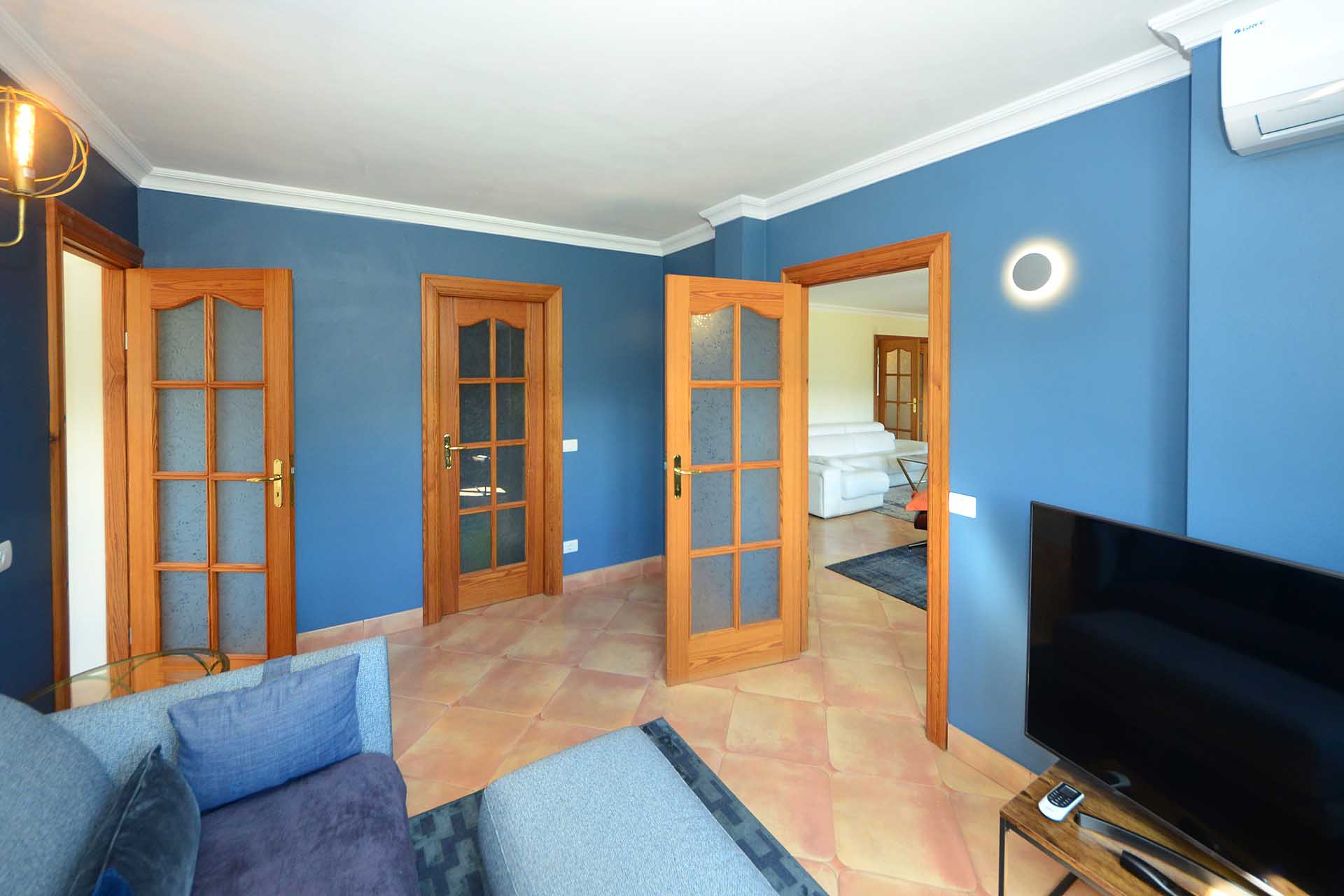 Man sieht der Wohnung an, dass sie nach den Wünschen eines deutschen Handwerkers errichtet und ihr Grundriss nach nordeuropäischen Bedürfnissen konzipiert wurde. Eigentlich waren in diesem Stockwerk zwei Wohnungen vorgesehen, diese wurden zu einer großen Wohnung umgeplant, dafür die Wände mit doppelschaligem Mauerwerk versehen und doppelverglaste Dreh-Kipp-Fenster eingebaut. Auch wurden sämtliche Zimmer größer ausgeführt, als in Spanien eigentlich üblich und so entstand eine sehr großzügige Wohneinheit, die an nichts zu wünschen übrig lässt: Eine große Küche mit Essplatz, dessen bodentief, durchgängig verglaster Erker den Blick in die Berge und bis zum Meer schweifen lässt, ein sehr großes Wohnzimmer (ca. 40 m²) mit Kamin, ein Lesezimmer, drei Schlafzimmer, zwei Bäder, zwei Dielen, ein Hauswirtschaftsraum, eine Speisekammer, zwei große, überdachte Balkone, ein Ankleide- und/oder Mehrzweckraum bieten auch kreativen Menschen oder Paaren, die häufiger Besuch empfangen ausreichend Platz für alle Bedürfnisse.