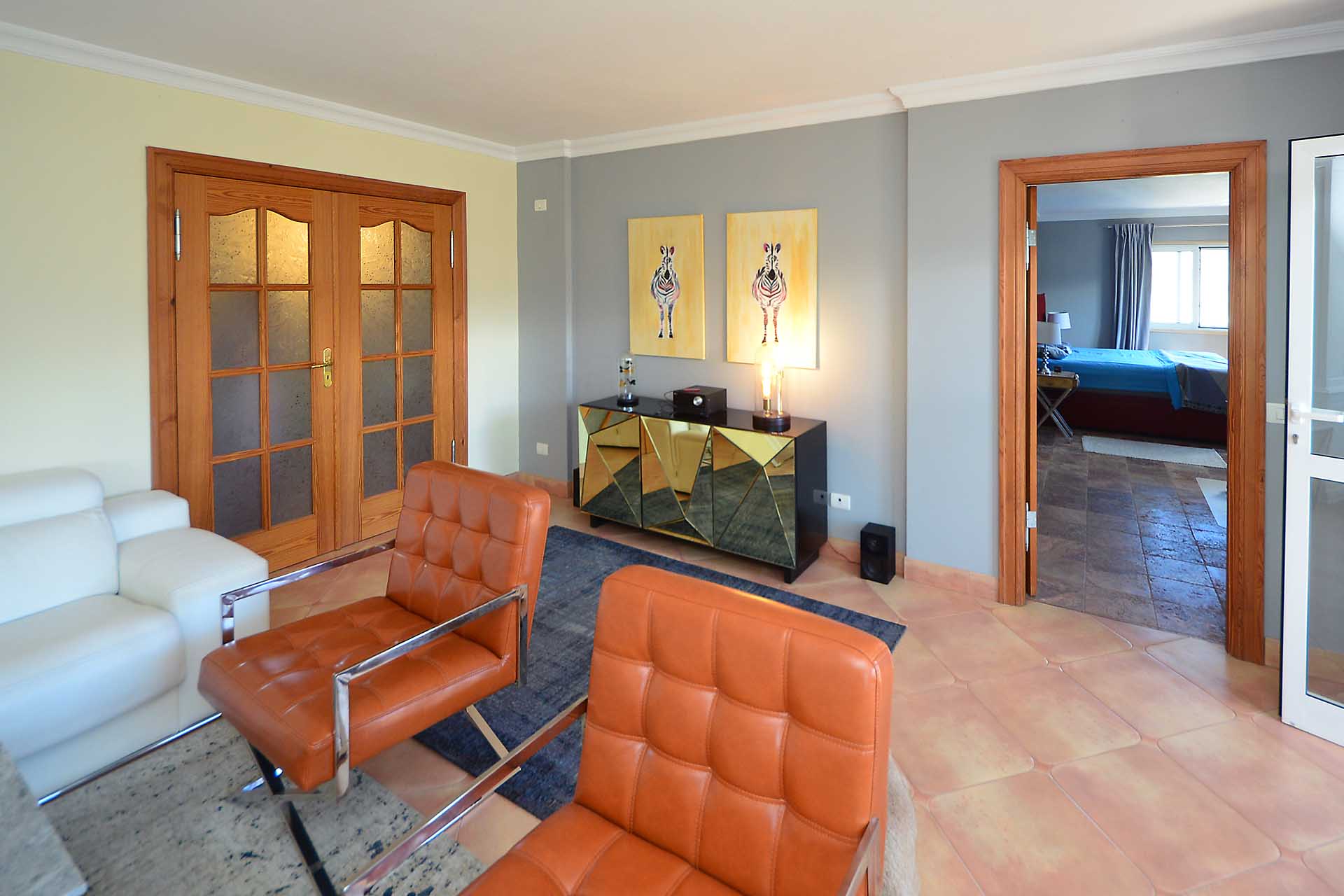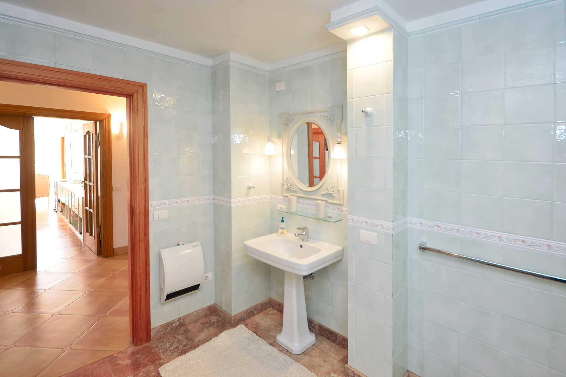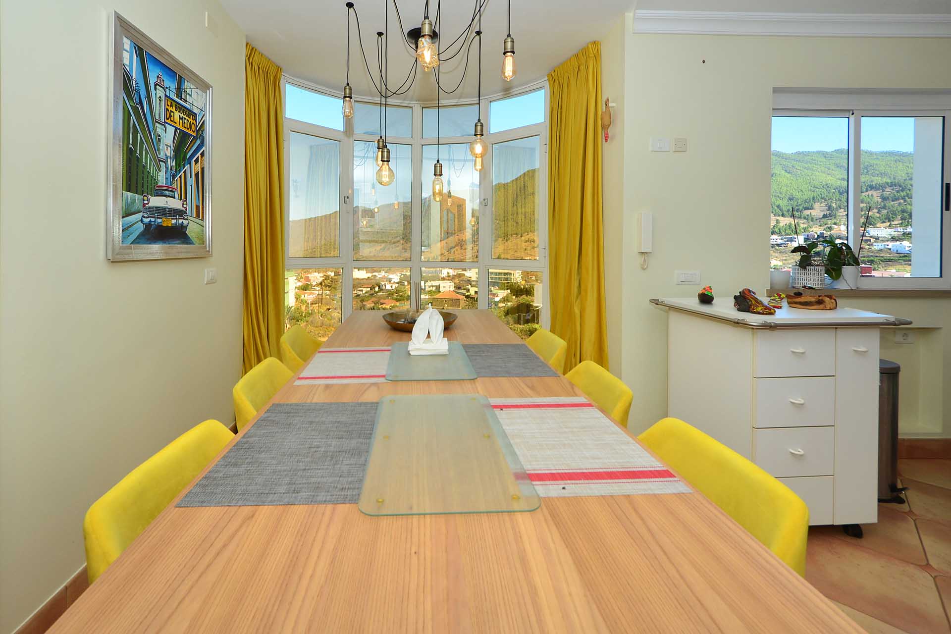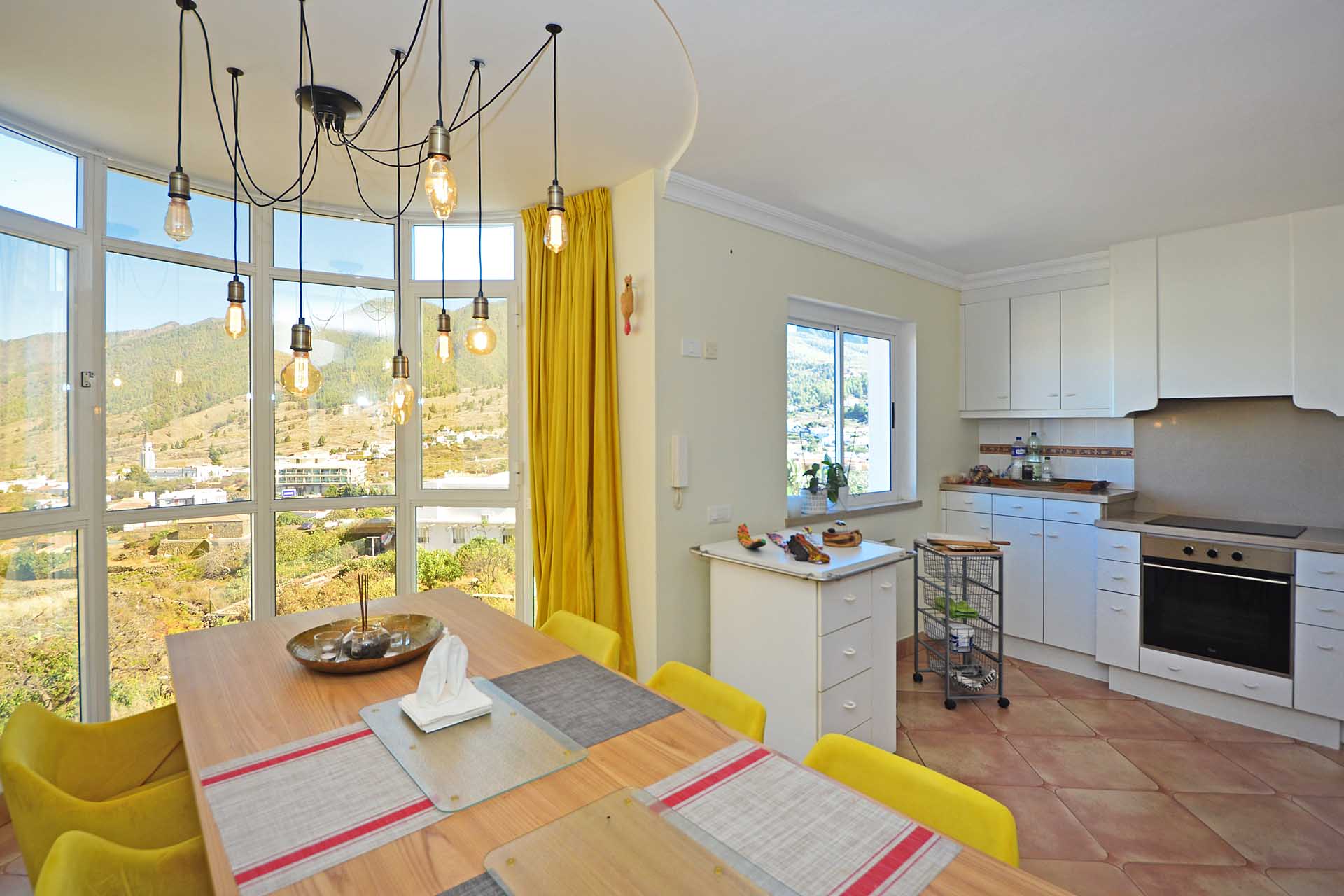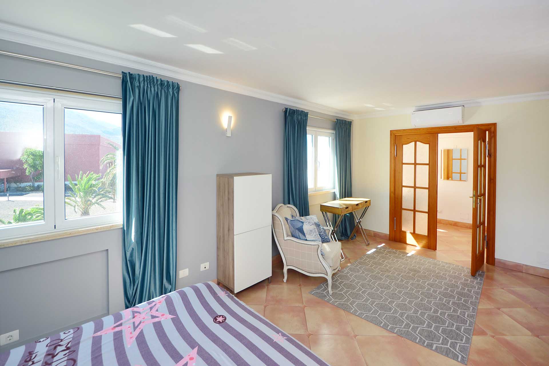 Man sieht der Wohnung an, dass sie nach den Wünschen eines deutschen Handwerkers errichtet und ihr Grundriss nach nordeuropäischen Bedürfnissen konzipiert wurde. Eigentlich waren in diesem Stockwerk zwei Wohnungen vorgesehen, diese wurden zu einer großen Wohnung umgeplant, dafür die Wände mit doppelschaligem Mauerwerk versehen und doppelverglaste Dreh-Kipp-Fenster eingebaut. Auch wurden sämtliche Zimmer größer ausgeführt, als in Spanien eigentlich üblich und so entstand eine sehr großzügige Wohneinheit, die an nichts zu wünschen übrig lässt: Eine große Küche mit Essplatz, dessen bodentief, durchgängig verglaster Erker den Blick in die Berge und bis zum Meer schweifen lässt, ein sehr großes Wohnzimmer (ca. 40 m²) mit Kamin, ein Lesezimmer, drei Schlafzimmer, zwei Bäder, zwei Dielen, ein Hauswirtschaftsraum, eine Speisekammer, zwei große, überdachte Balkone, ein Ankleide- und/oder Mehrzweckraum bieten auch kreativen Menschen oder Paaren, die häufiger Besuch empfangen ausreichend Platz für alle Bedürfnisse.