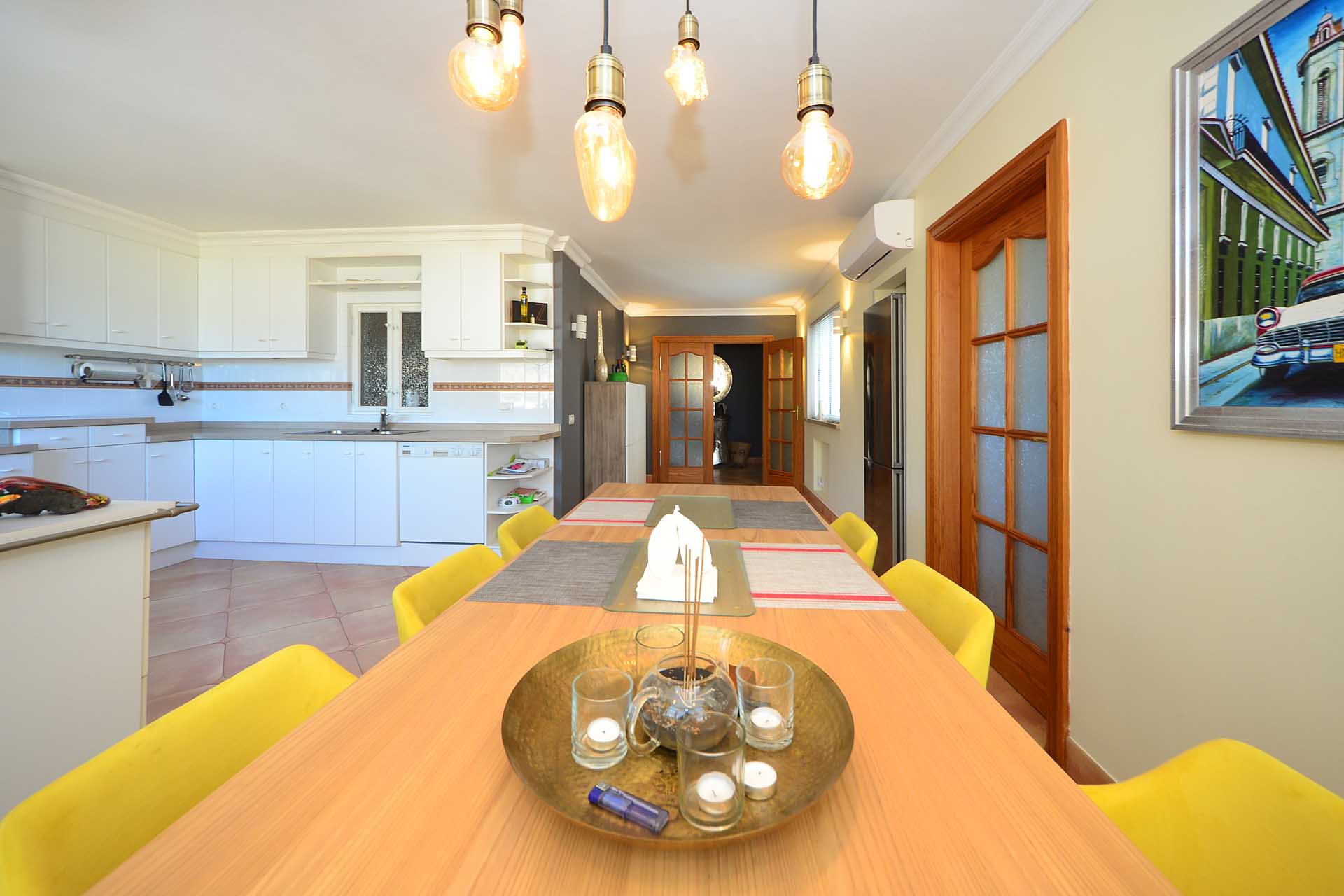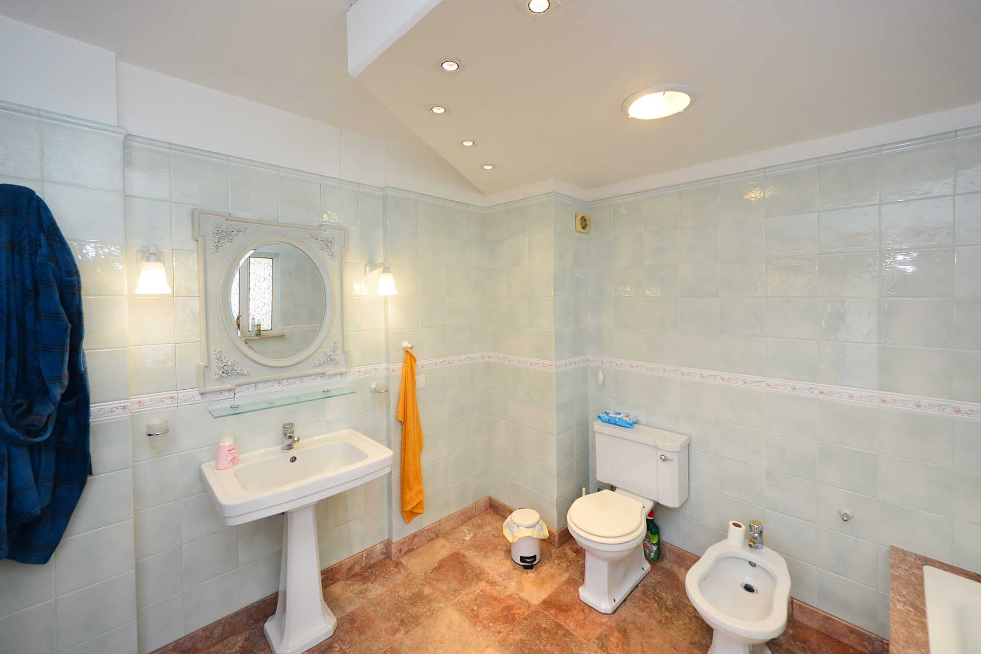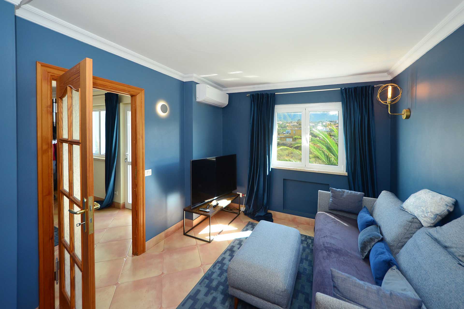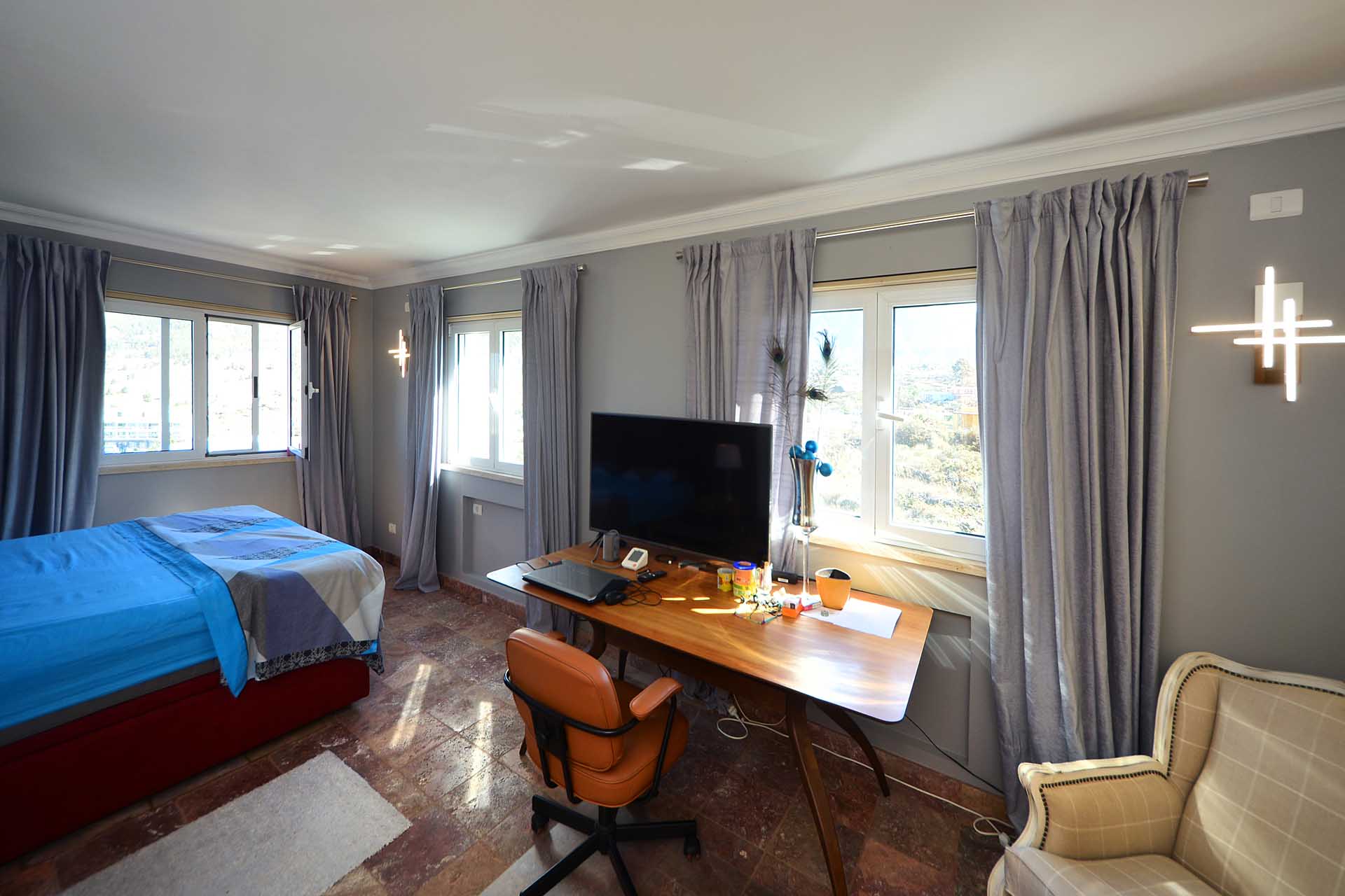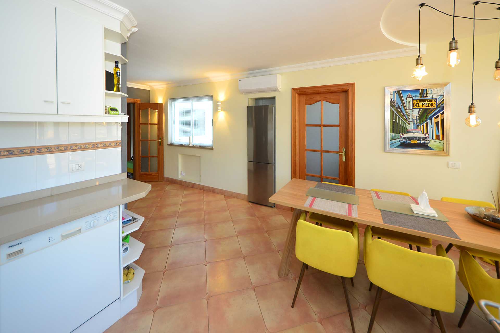 Man sieht der Wohnung an, dass sie nach den Wünschen eines deutschen Handwerkers errichtet und ihr Grundriss nach nordeuropäischen Bedürfnissen konzipiert wurde. Eigentlich waren in diesem Stockwerk zwei Wohnungen vorgesehen, diese wurden zu einer großen Wohnung umgeplant, dafür die Wände mit doppelschaligem Mauerwerk versehen und doppelverglaste Dreh-Kipp-Fenster eingebaut. Auch wurden sämtliche Zimmer größer ausgeführt, als in Spanien eigentlich üblich und so entstand eine sehr großzügige Wohneinheit, die an nichts zu wünschen übrig lässt: Eine große Küche mit Essplatz, dessen bodentief, durchgängig verglaster Erker den Blick in die Berge und bis zum Meer schweifen lässt, ein sehr großes Wohnzimmer (ca. 40 m²) mit Kamin, ein Lesezimmer, drei Schlafzimmer, zwei Bäder, zwei Dielen, ein Hauswirtschaftsraum, eine Speisekammer, zwei große, überdachte Balkone, ein Ankleide- und/oder Mehrzweckraum bieten auch kreativen Menschen oder Paaren, die häufiger Besuch empfangen ausreichend Platz für alle Bedürfnisse.