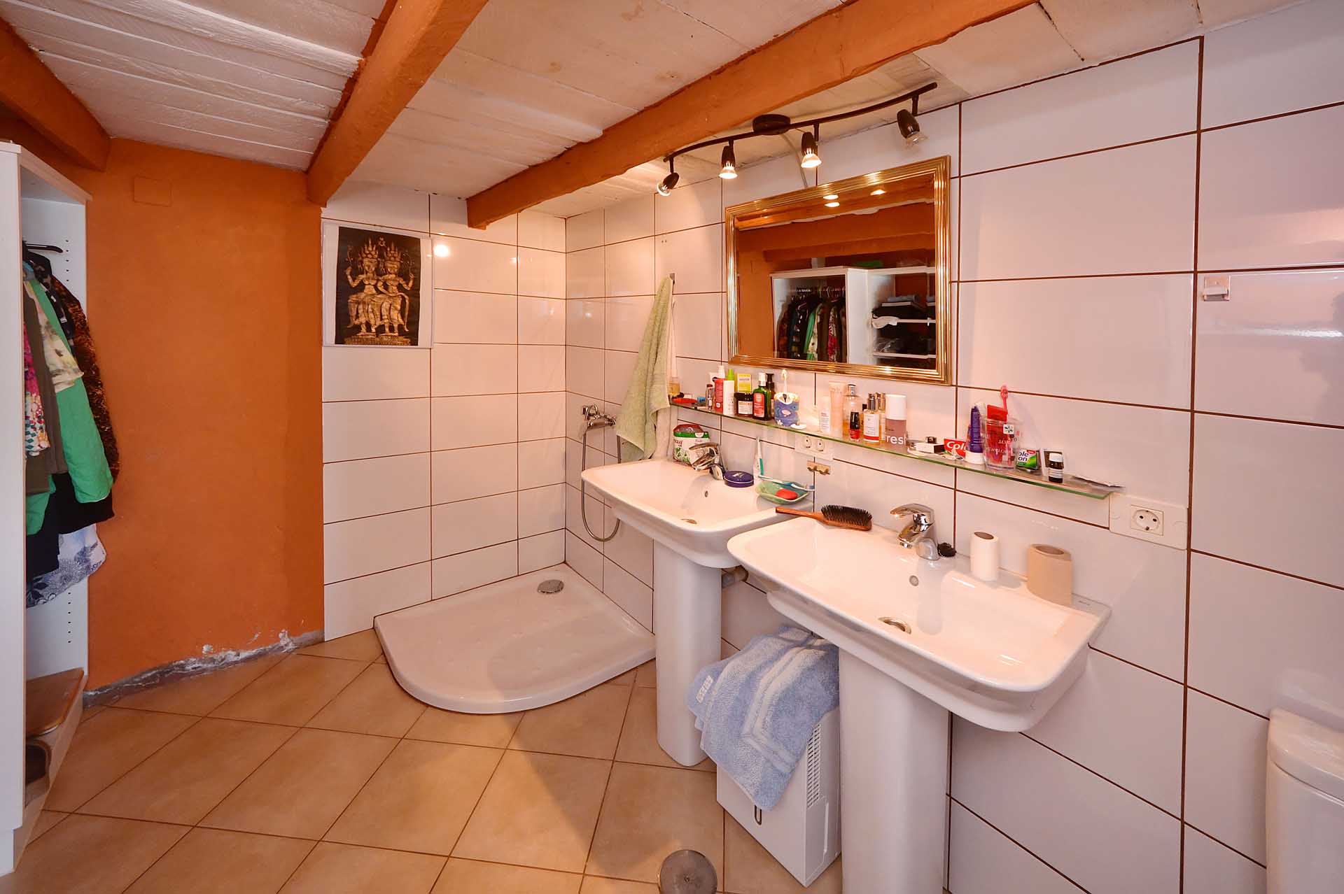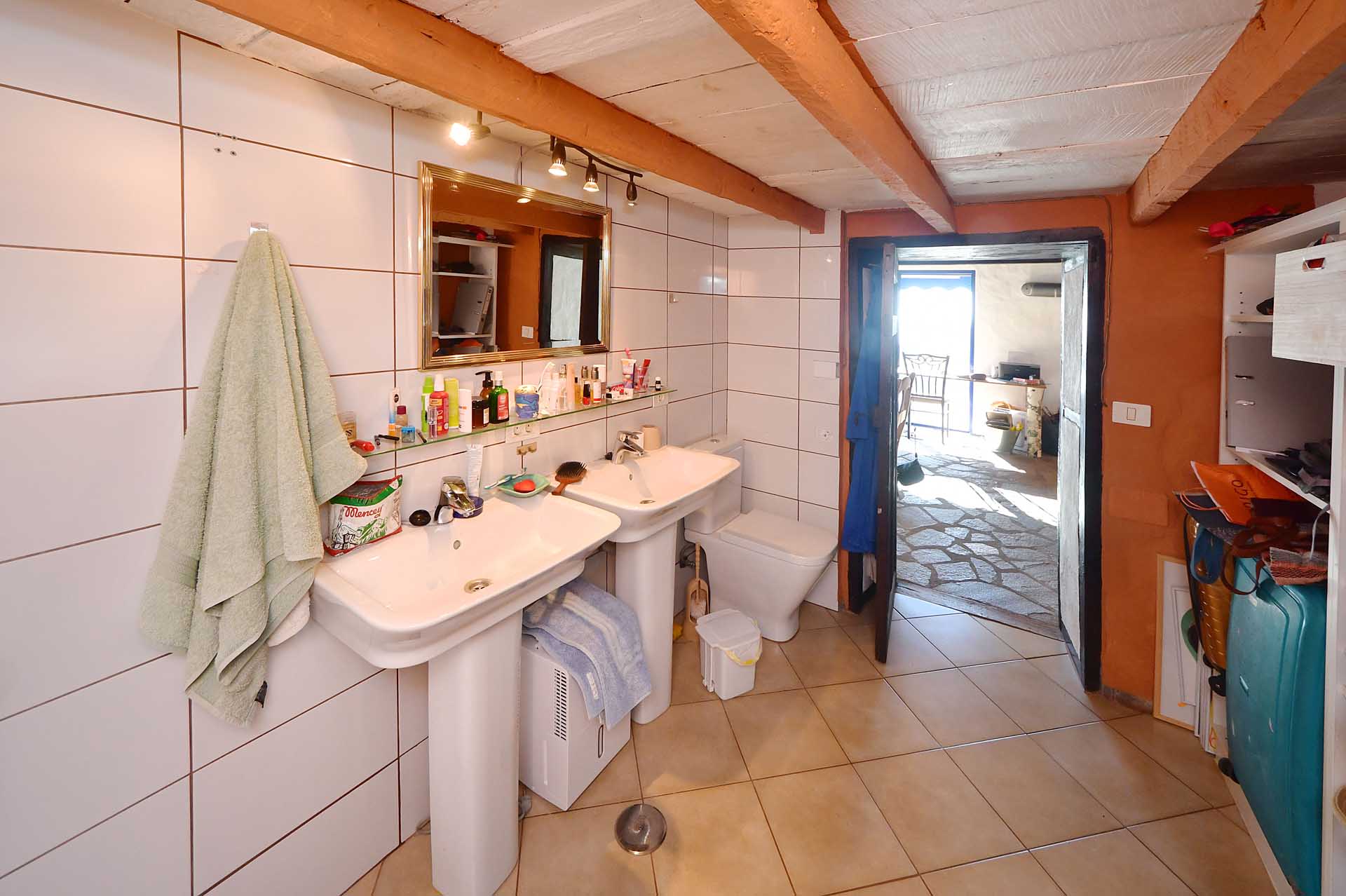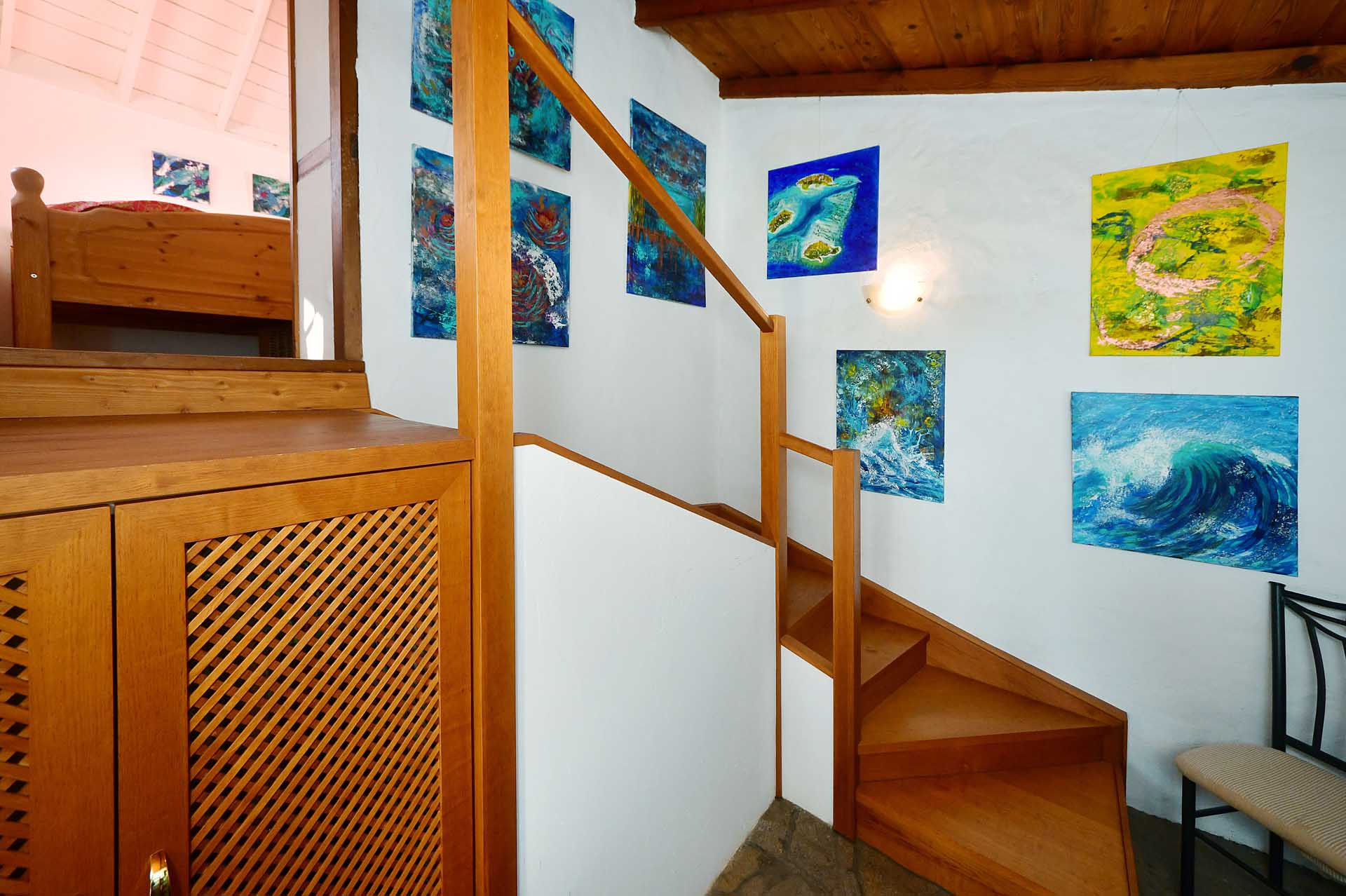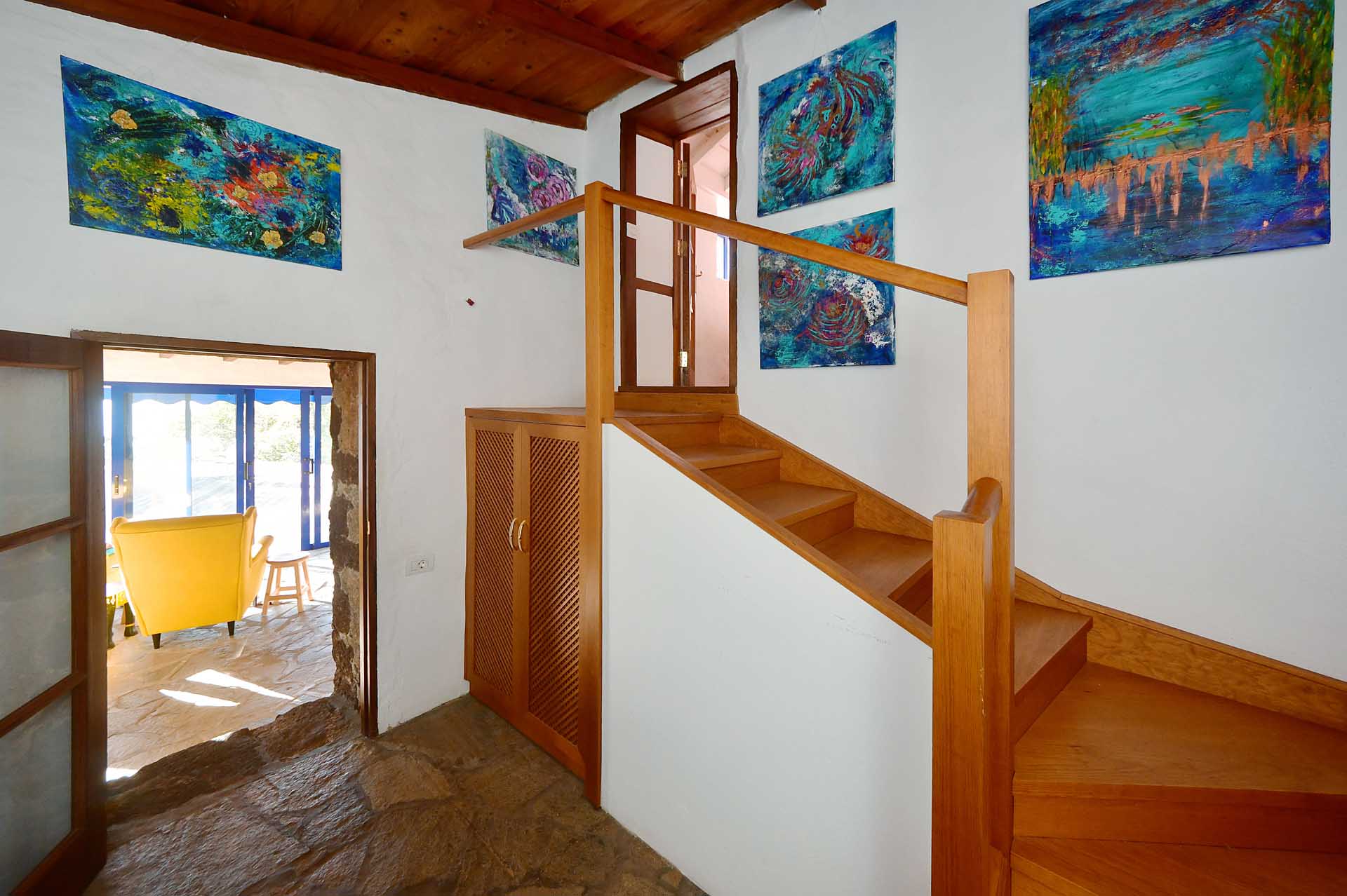 Ein Schlafzimmer ist ebenerdig neu errichtet und hat direkten Zugang zum großen Bdezimmer, sowie zum Wohnbereich. In dem authentisch renovierten Altbau, der das Herz der ehemaligen Mandelfinca bildete, wurde ein kleines Treppenhaus mit Staumöglichkeiten gebaut, das im Halbobergeschoss ein weiteres, sehr gemütliches Schlafzimmer mit originalem kanarischem Dachstuhl beherbergt. Durch die Flächenqualifizierung als „ländliches Siedlungsgebiet“ darf die bestehende Bausubstanz bis zu einer Gesamtfläche von 216 m² (also um 78 m² Grundfläche) erweitert werden.