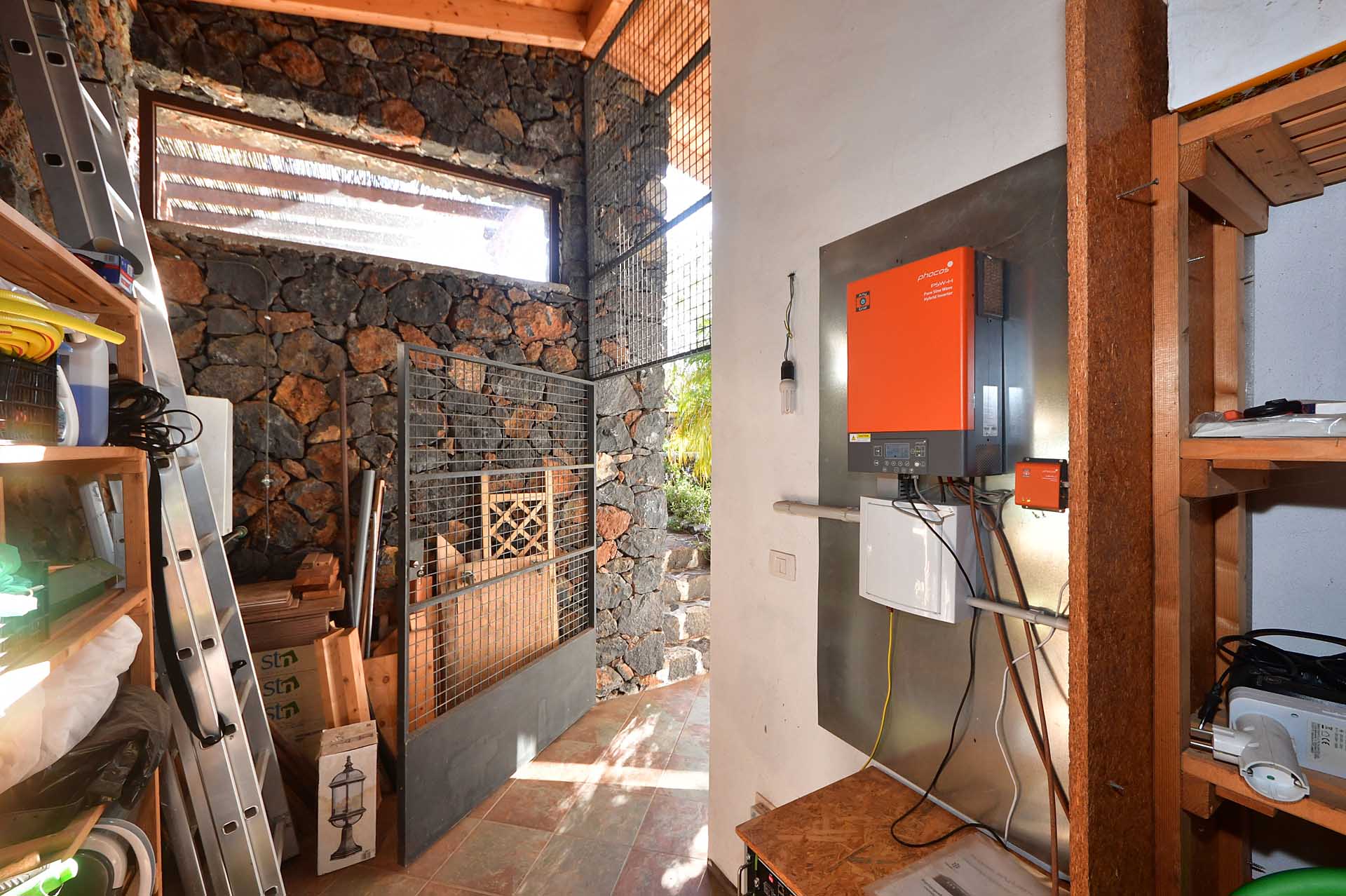 Die Photovoltaikanlage ist erste wenige Jahre alt und mit großzügigem Batteriespeicher versehen. Sie reicht zur Deckung des Strombedarfs des Anwesens aus, ist jedoch netzgekoppelt, so dass bei sehr hohem Bedarf dieser aus dem Netz gedeckt werden kann und vor allem der im Sommer entstehende Energieüberschuss in das Netz eingespeist werden könnte, um den CO2-Ausstoß der Insel zu reduzieren und ein, wenn auch geringes Entgelt zu erzielen.