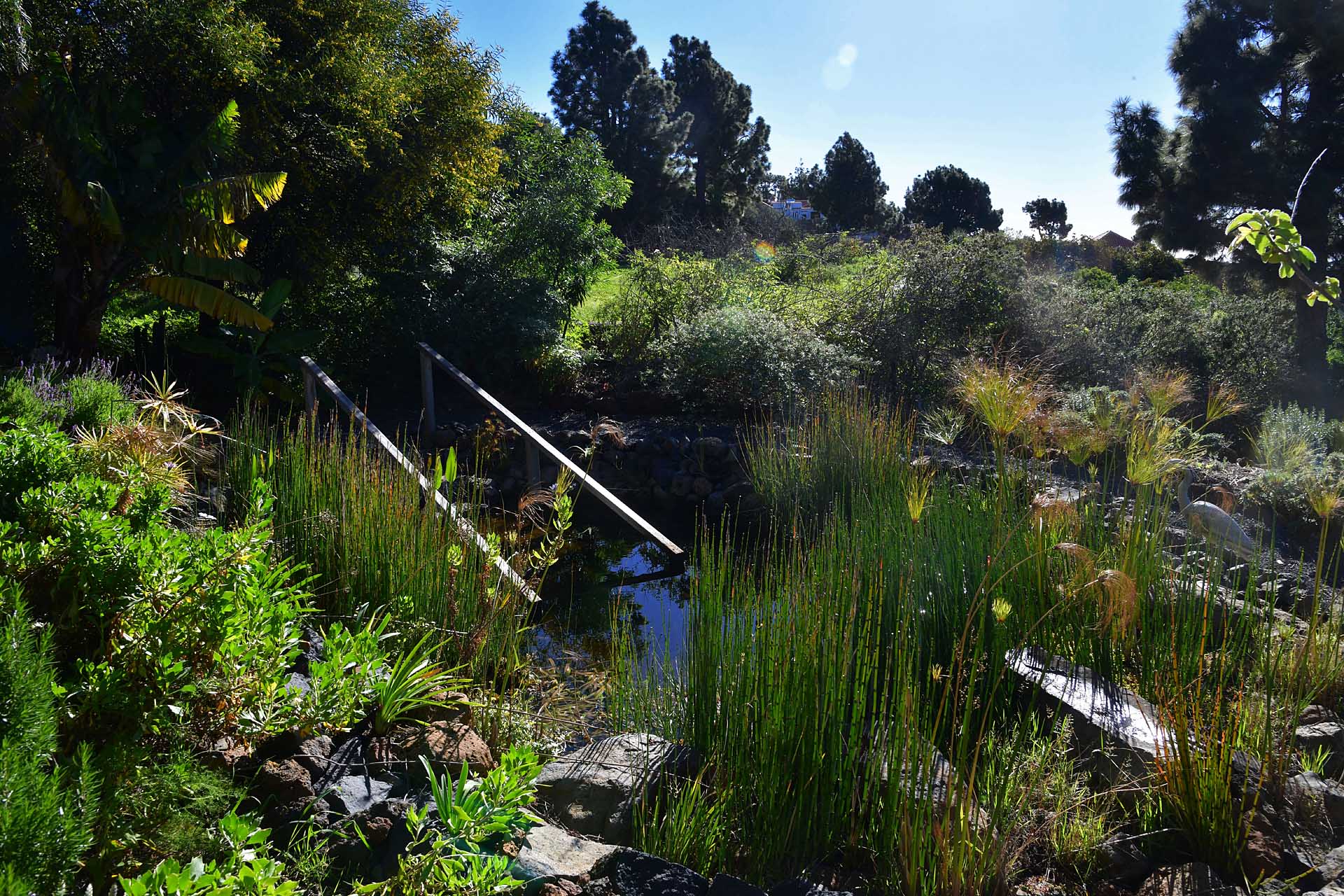 Etwas unterhalb wurde ein Schwimmteich gebaut, der eine schöne Gelegenheit zur Erfrischung bietet und einige Goldfische enthält.