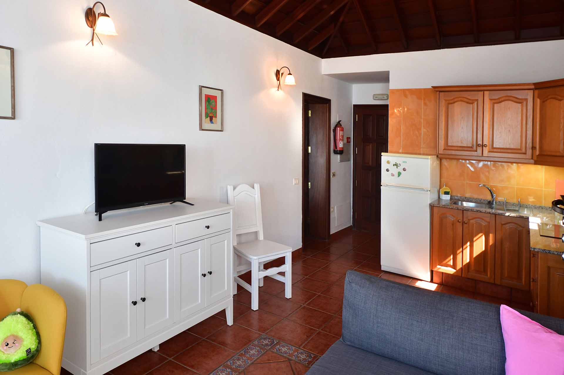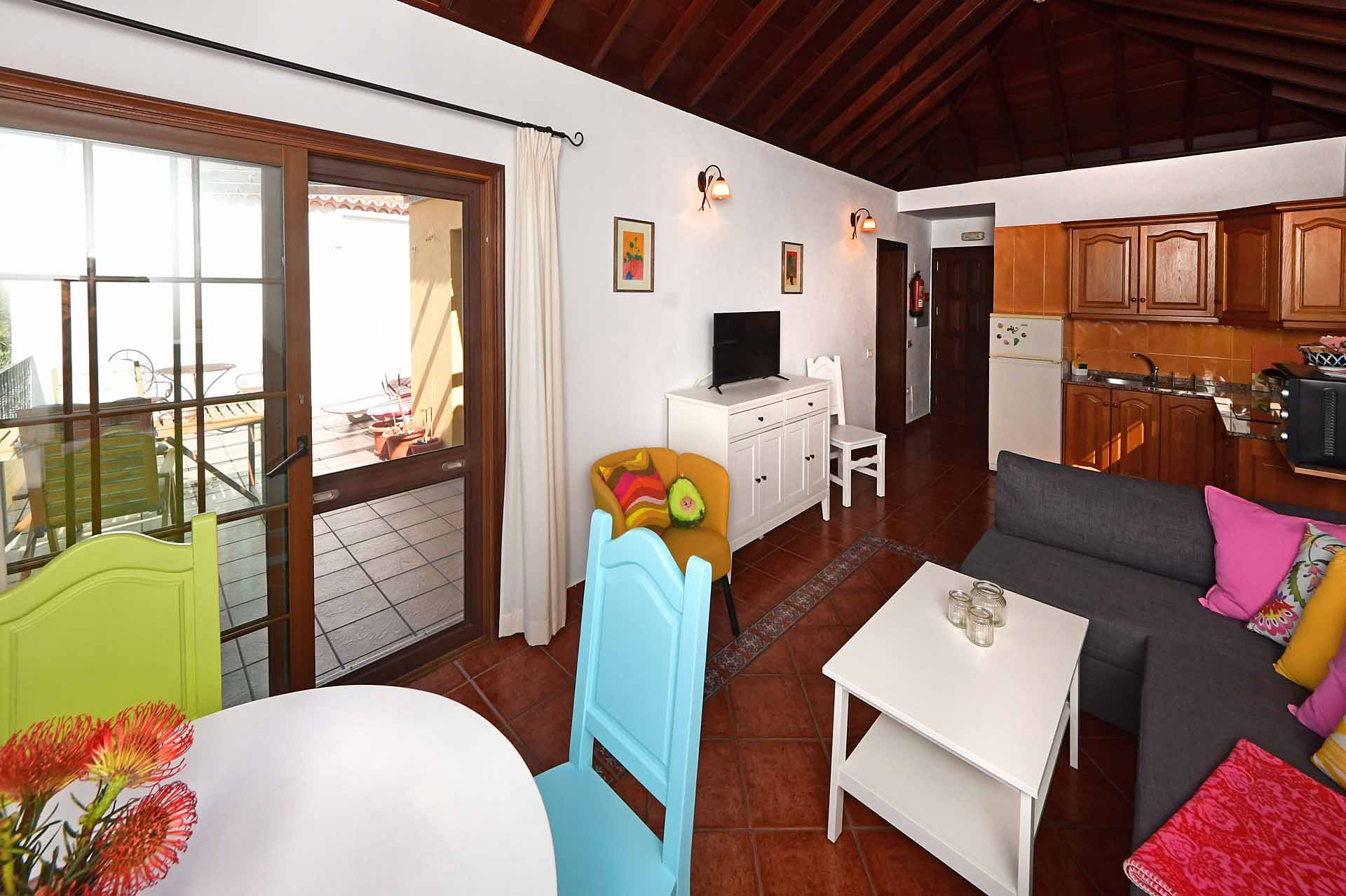 Es ist aufgeteilt in eine großzügige Wohnküche, ein Doppelschlafzimmer und ein Tageslichtbad mit Dusche, sowie eine große Terrasse/Balkon mit Außendusche, die exklusiv nur von diesem Apartment genutzt wird und vollständige Privatspähre bietet.