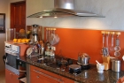 Just as the entire house, the use of wood and Mediterranean colors, a thoughtful, step-up lighting design accents exudes extraordinary comfort, the kitchen is also not only a work around but a comfortable room. A large, combined gas and electric stove with ceramic glass cooktop and generously dimensioned stainless steel extractor hood is located on the front page.