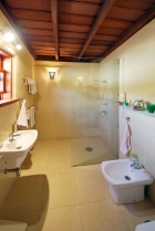 The new building took place in 2007 and only exclusively and high quality materials was used. The walls are made of Termoacilla (comparable to the German Poroton brick), all doors, lattice windows and built-in wardrobes are made of ecologically certified Solomon Paduk plantation wood and are mostly provided with insect screens. The visible ceiling beams are made of mulberry wood. The property is barrier-free and suitable for allergy sufferers.