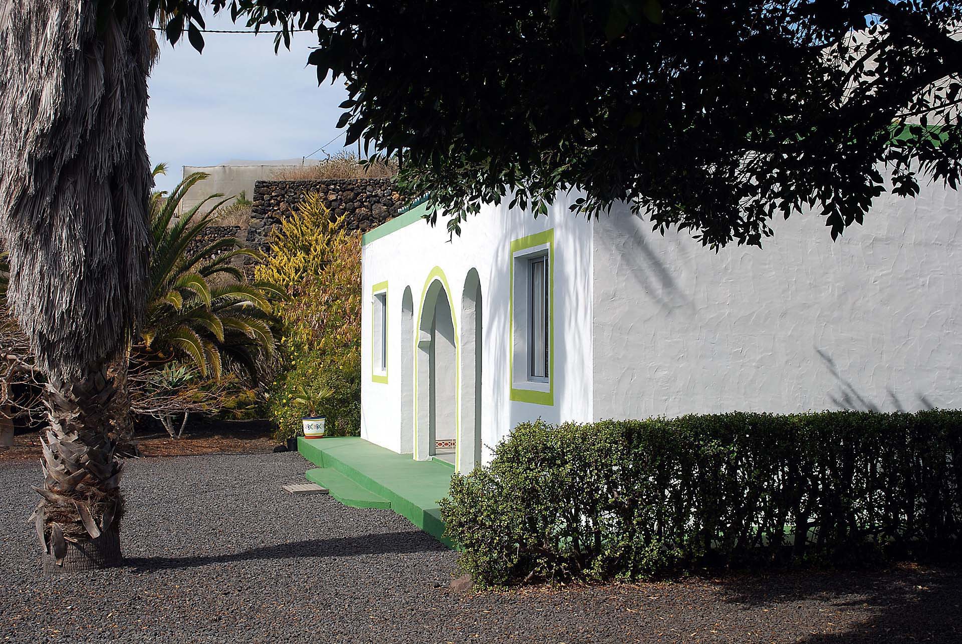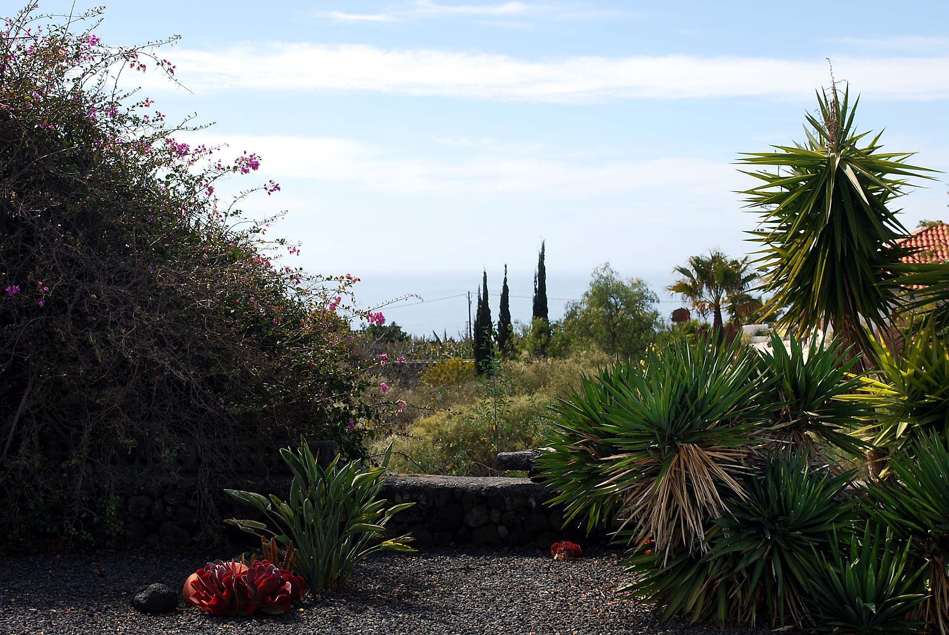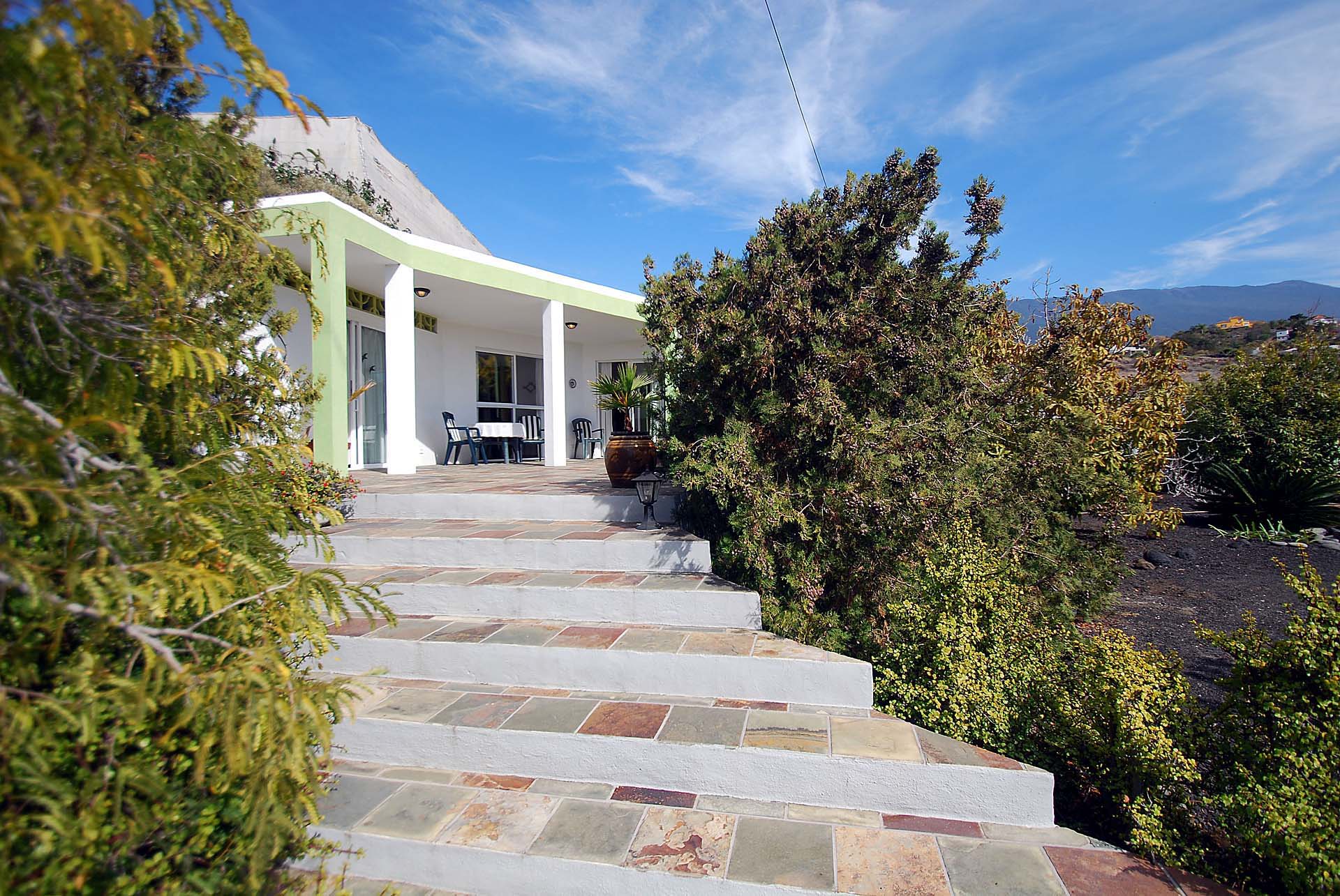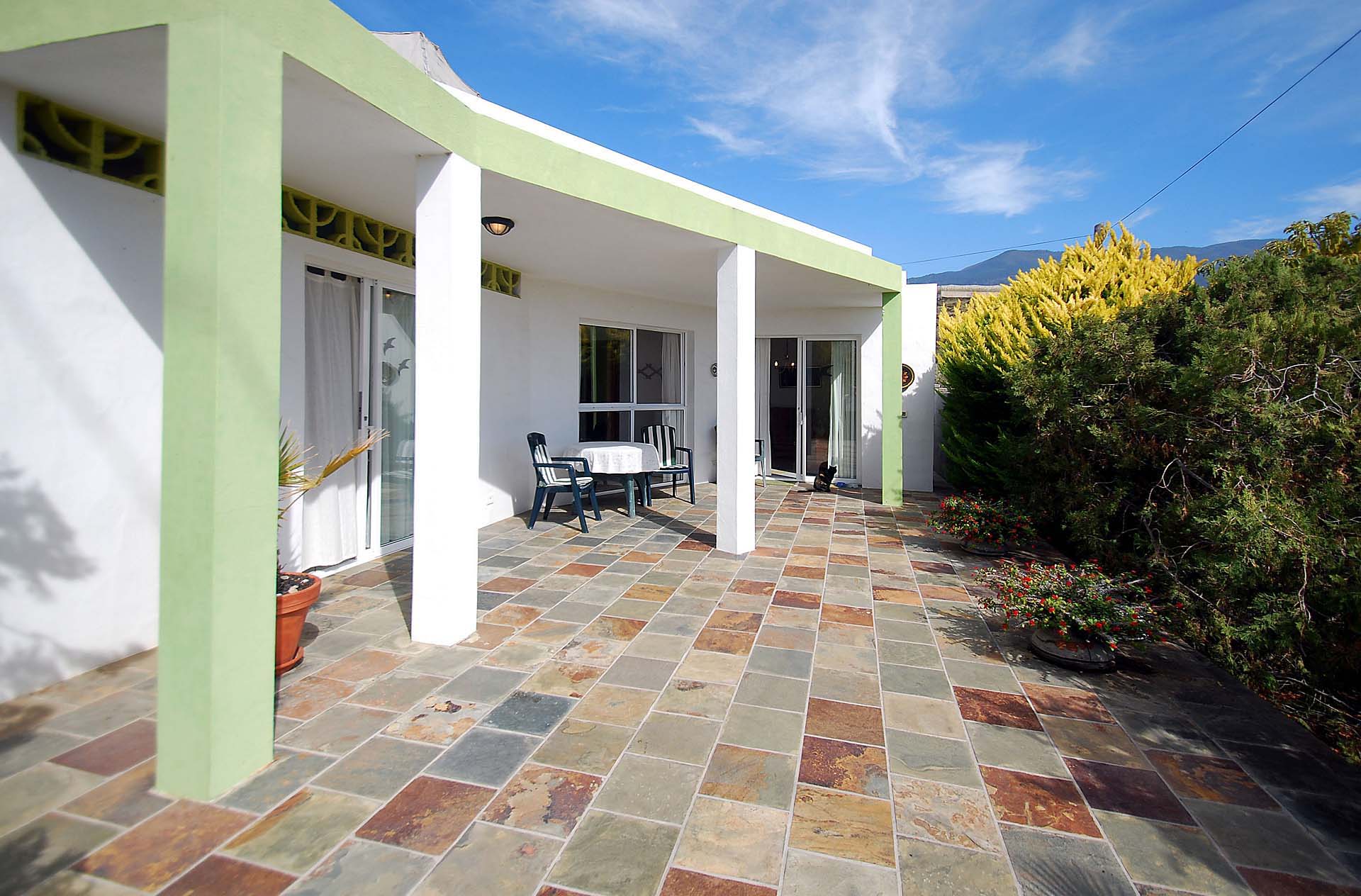At an altitude of only 230 m above sea level and thus in the warmer climate of our beautiful island this bungalow with separate guest house is located. The Bauhaus style, with Moorish elements is typical on La Palma and has its own, honest and uncluttered charm. The main building offers a very spacious, roofed terrace on which you reside on one of the all-weather is like. From the terrace you enter the kitchen area of ??the open stretched apartment kitchen. On both sides of the house are the two bedrooms, each with a private bathroom. On the east side joins the breakfast terrace that leads you to the spacious roof terrace with stunning sea views.