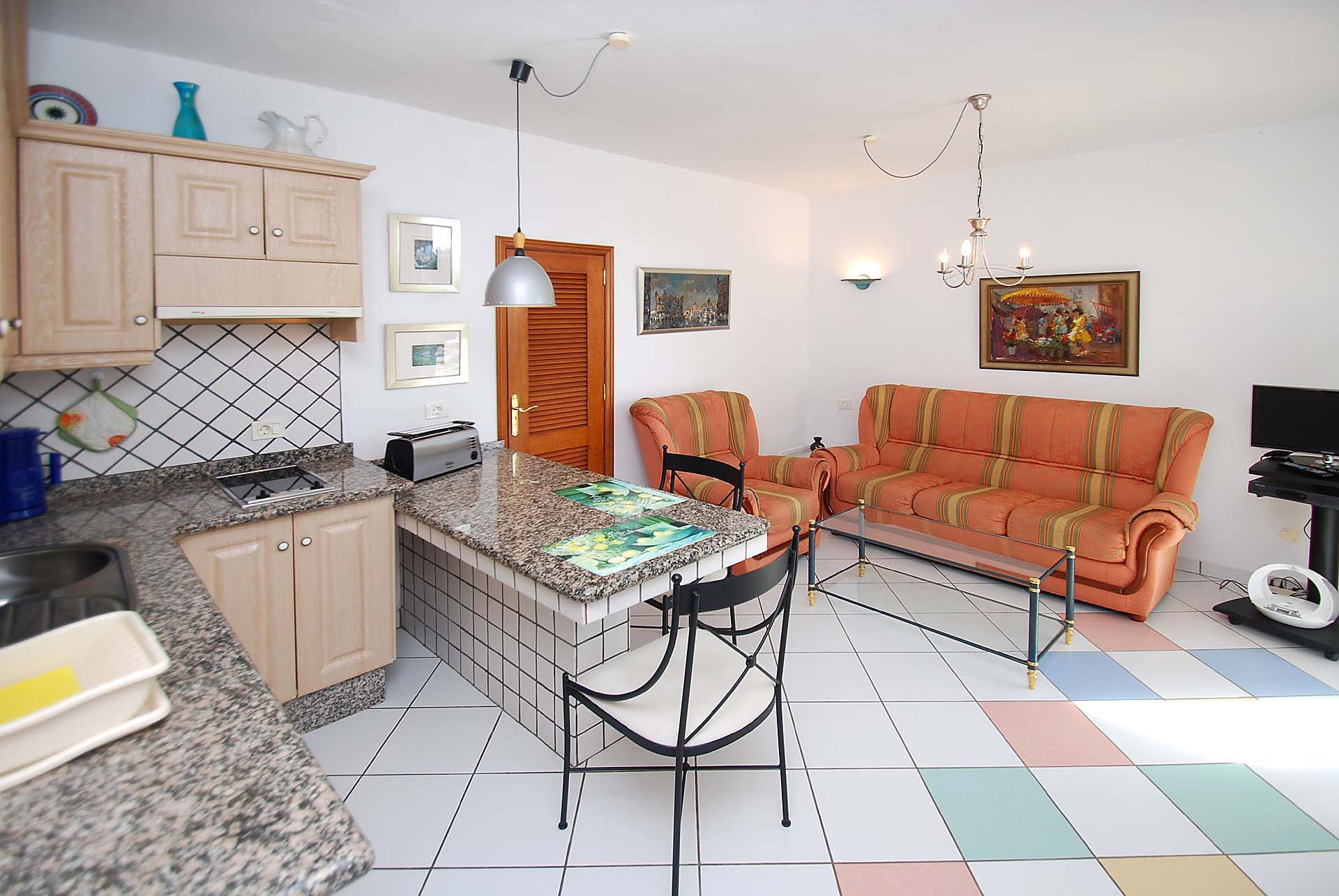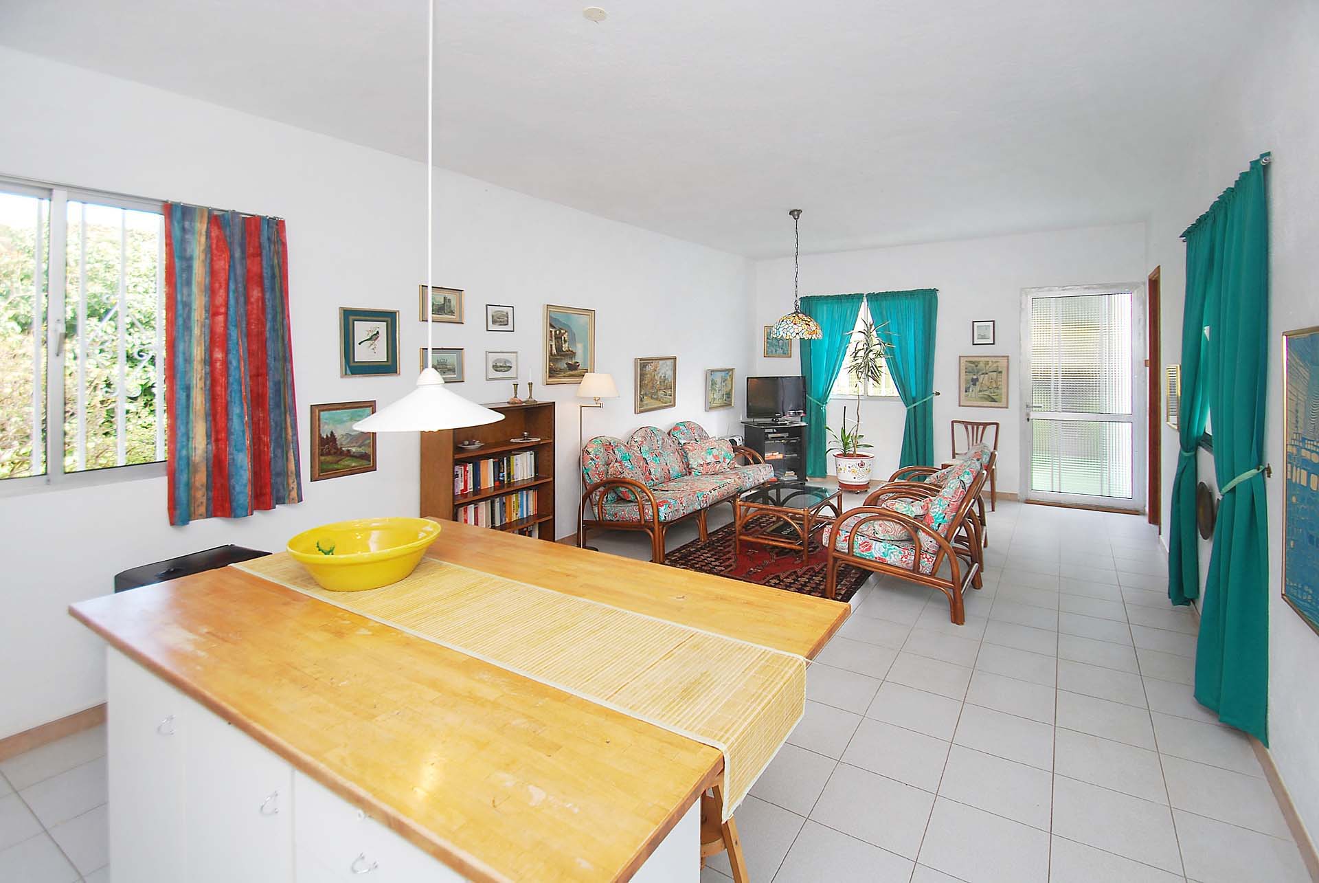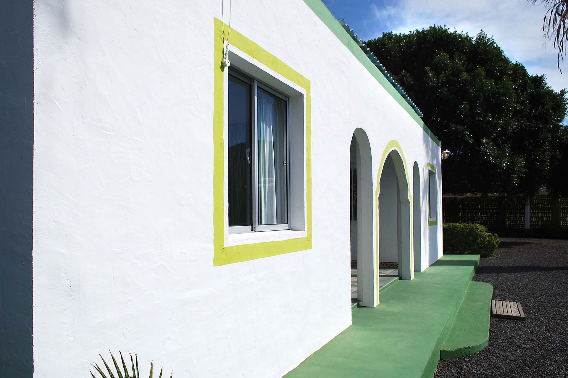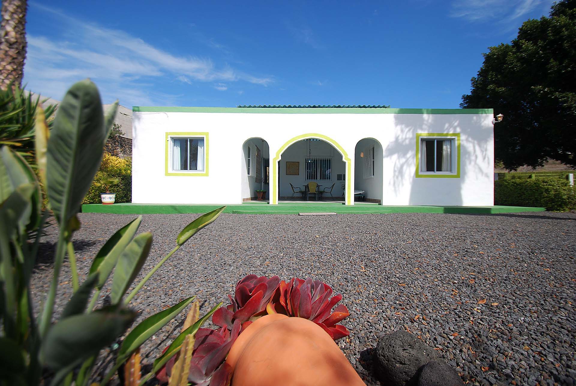 At an altitude of only 230 m above sea level and thus in the warmer climate of our beautiful island this bungalow with separate guest house is located. The Bauhaus style, with Moorish elements is typical on La Palma and has its own, honest and uncluttered charm. The main building offers a very spacious, roofed terrace on which you reside on one of the all-weather is like. From the terrace you enter the kitchen area of ??the open stretched apartment kitchen. On both sides of the house are the two bedrooms, each with a private bathroom. On the east side joins the breakfast terrace that leads you to the spacious roof terrace with stunning sea views.