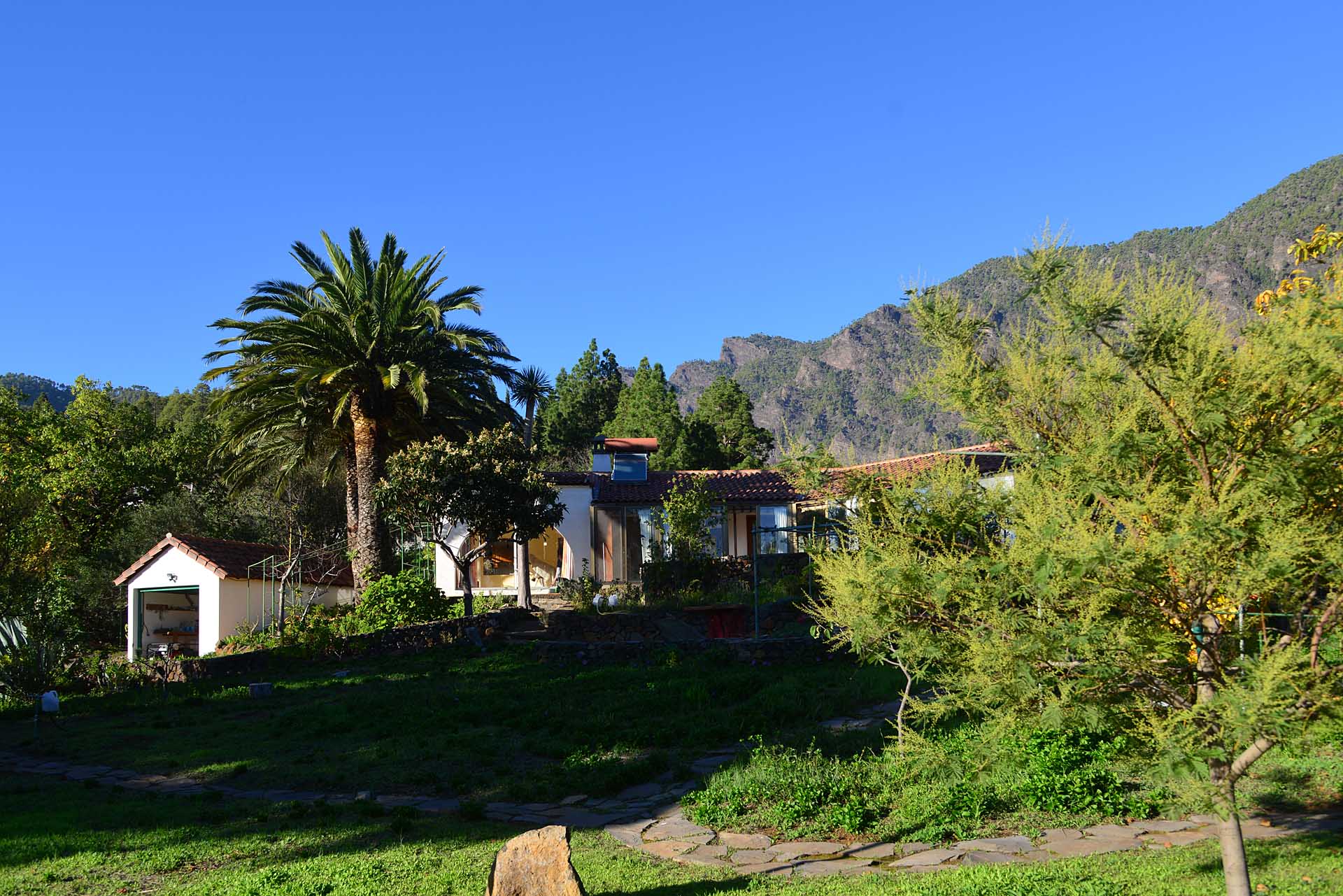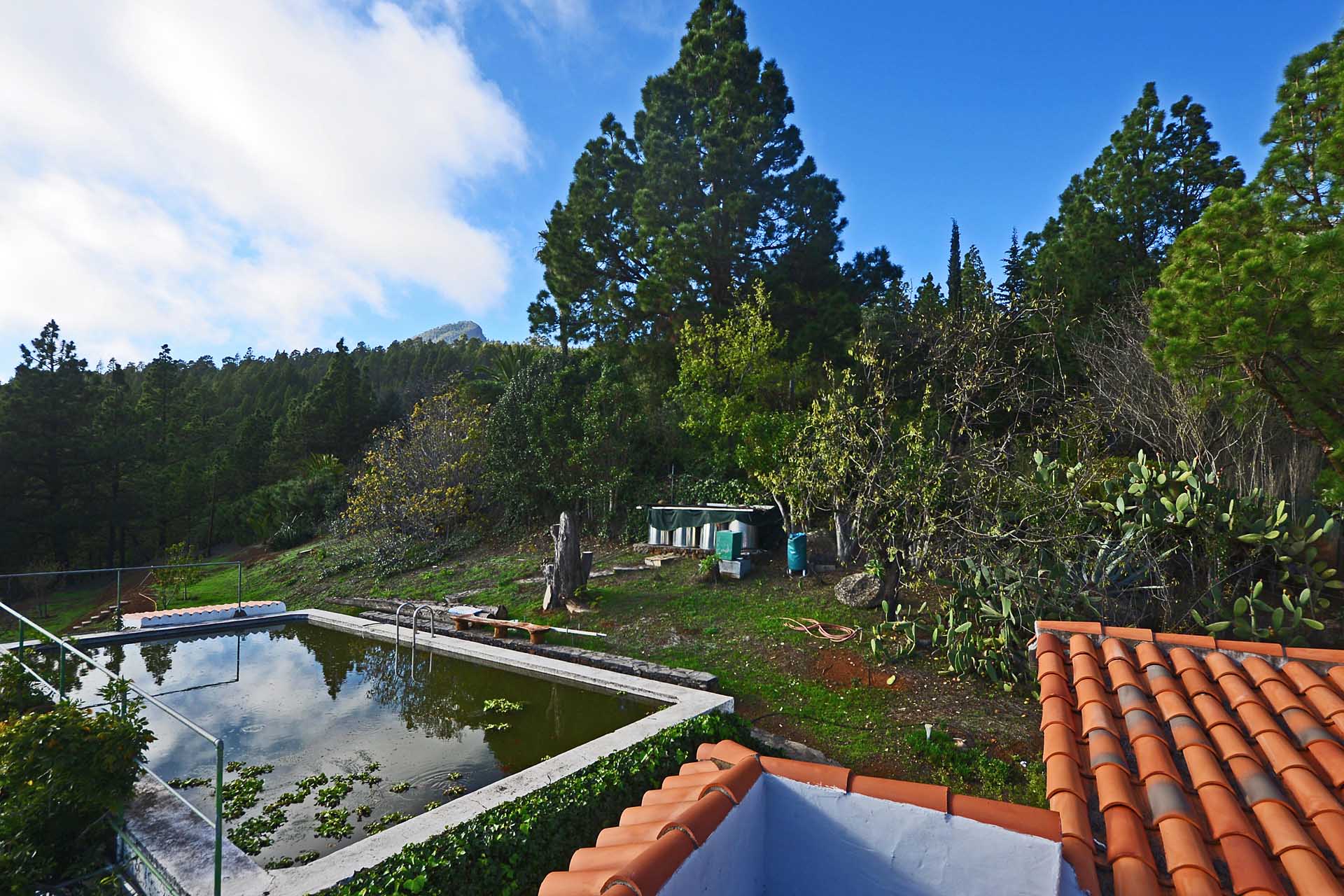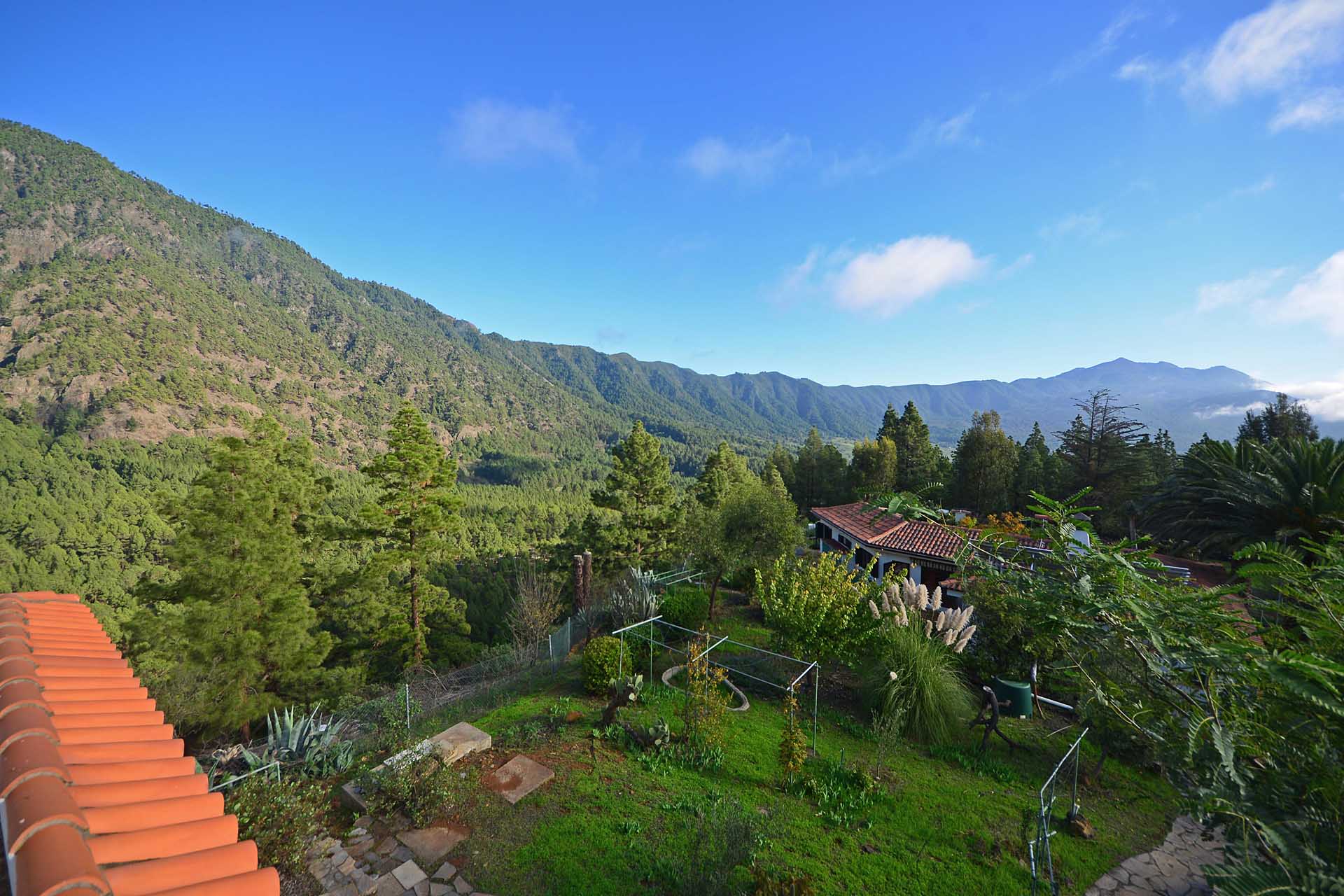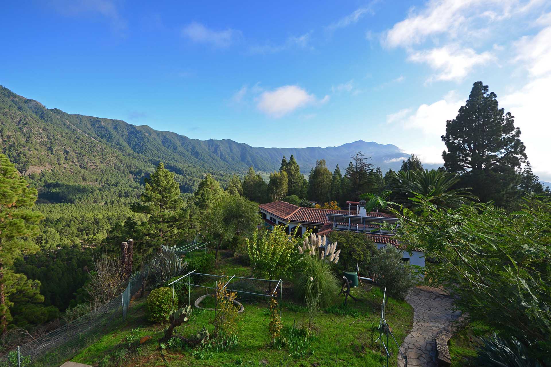 This finca is located in a uniquely beautiful landscape protection area on the edge of the national park "Caldera de Taburiente" on the southern slopes of the mighty Bejenado, well protected from the prevailing northeast winds in the midst of the wonderful pine forest and its incomparably fresh scent. The nearly 8.000 m² site was created partly park-like and located on a dead end. It houses a 200 m² area large residential house with large living room with fireplace, conservatory, kitchen, dining room, 2 bathrooms and 3 bedrooms just as a utility room.