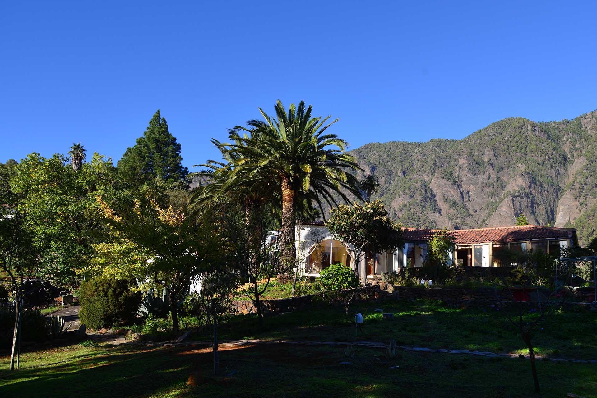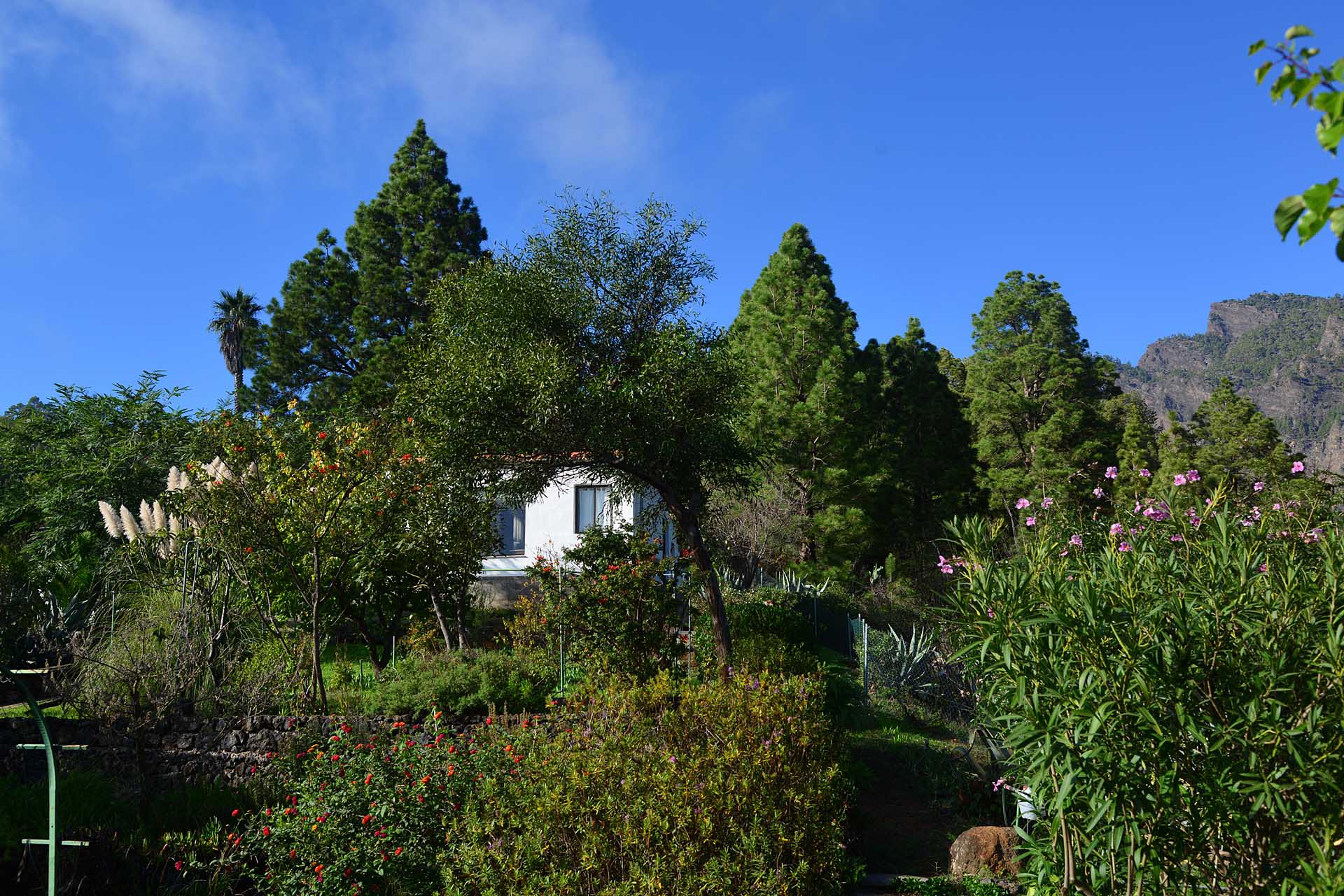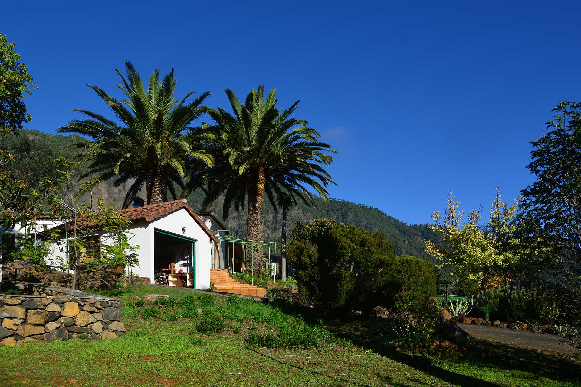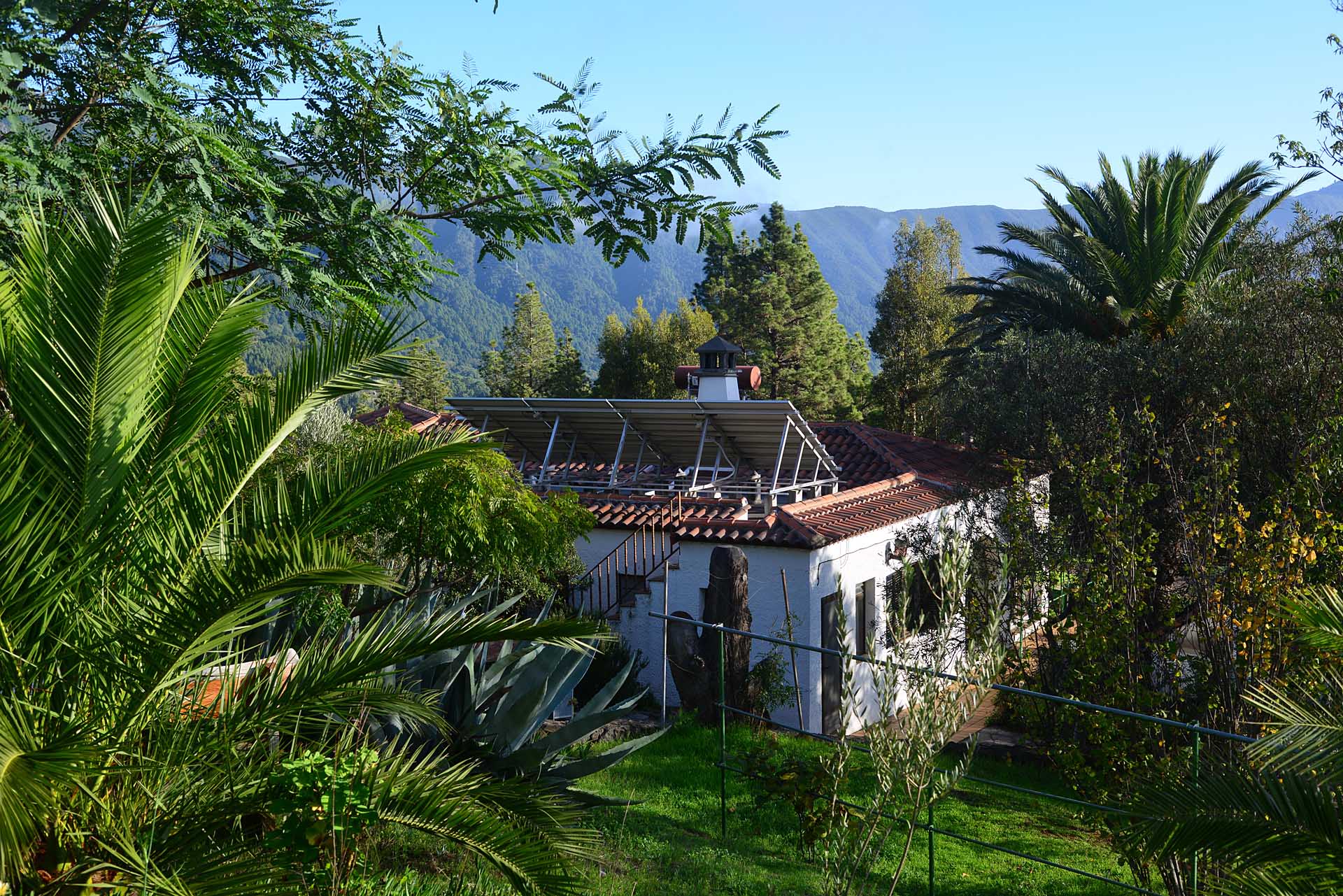 This finca is located in a uniquely beautiful landscape protection area on the edge of the national park "Caldera de Taburiente" on the southern slopes of the mighty Bejenado, well protected from the prevailing northeast winds in the midst of the wonderful pine forest and its incomparably fresh scent. The nearly 8.000 m² site was created partly park-like and located on a dead end. It houses a 200 m² area large residential house with large living room with fireplace, conservatory, kitchen, dining room, 2 bathrooms and 3 bedrooms just as a utility room.