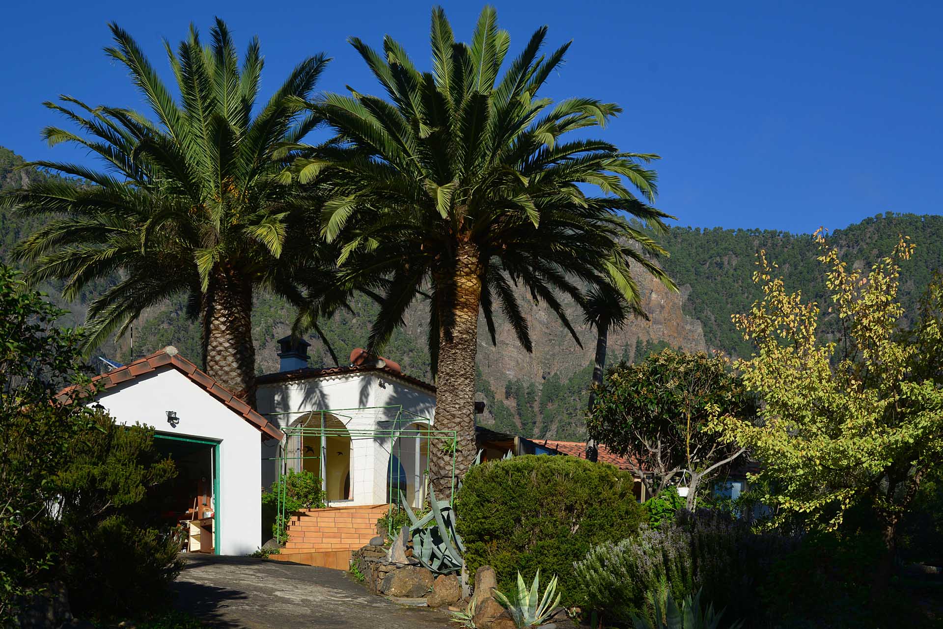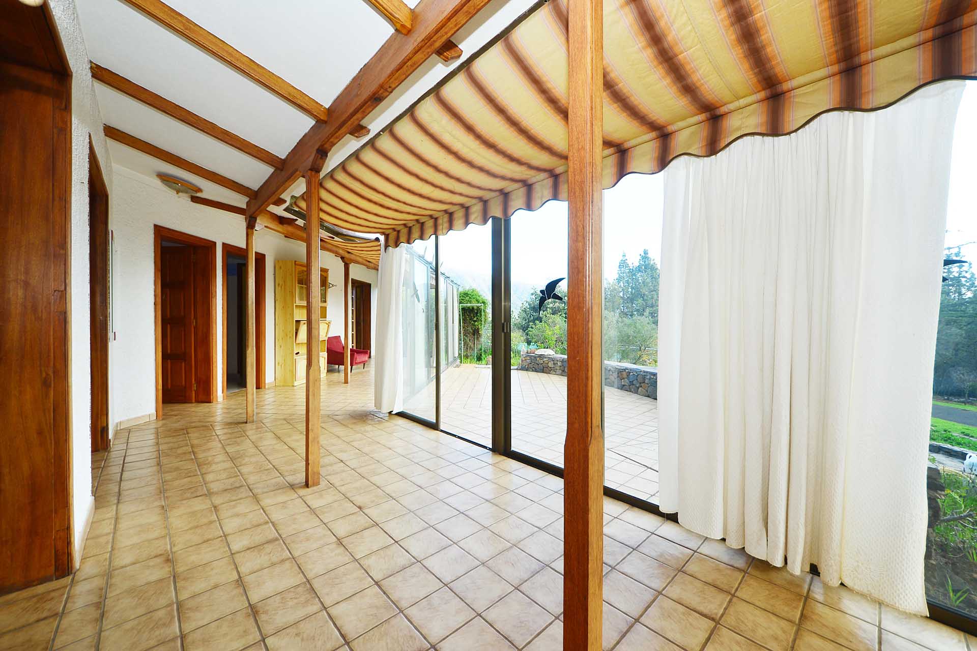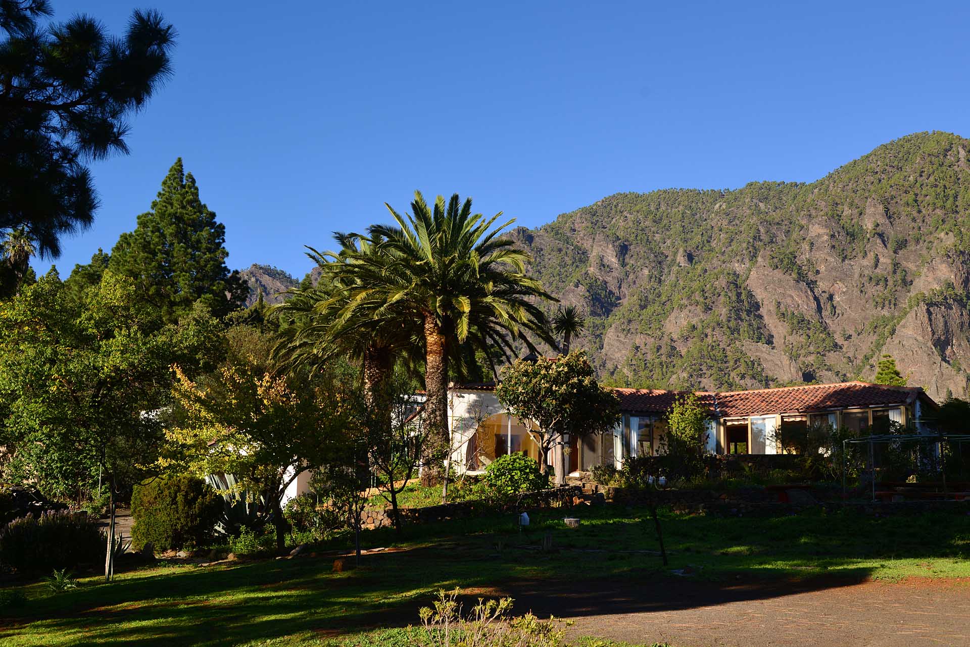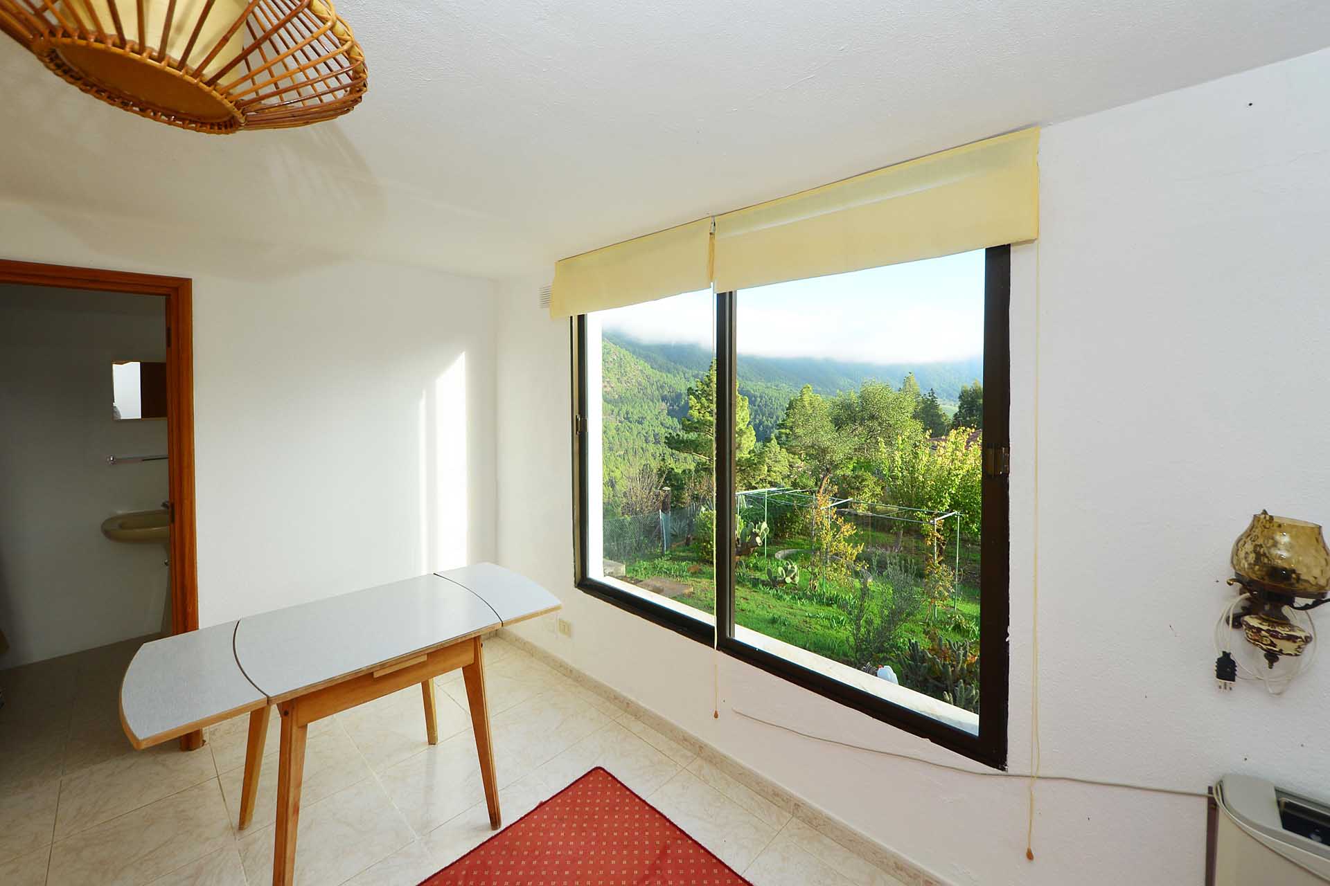 This finca is located in a uniquely beautiful landscape protection area on the edge of the national park "Caldera de Taburiente" on the southern slopes of the mighty Bejenado, well protected from the prevailing northeast winds in the midst of the wonderful pine forest and its incomparably fresh scent. The nearly 8.000 m² site was created partly park-like and located on a dead end. It houses a 200 m² area large residential house with large living room with fireplace, conservatory, kitchen, dining room, 2 bathrooms and 3 bedrooms just as a utility room.