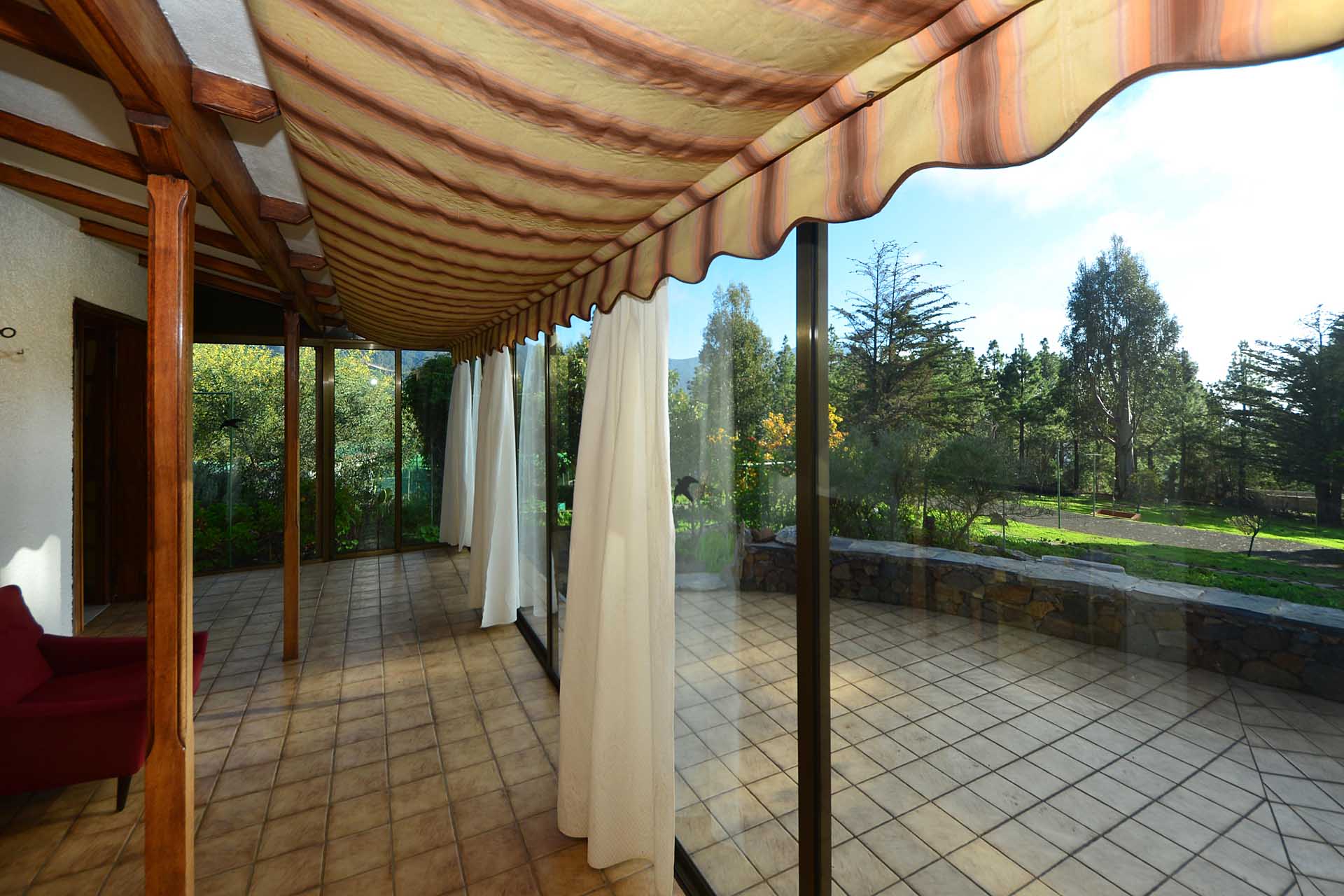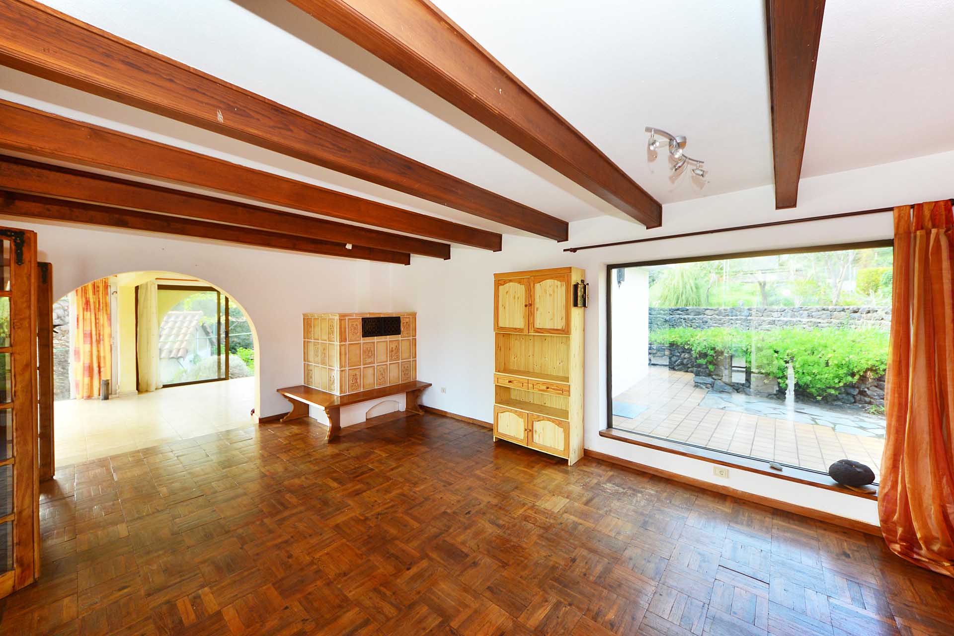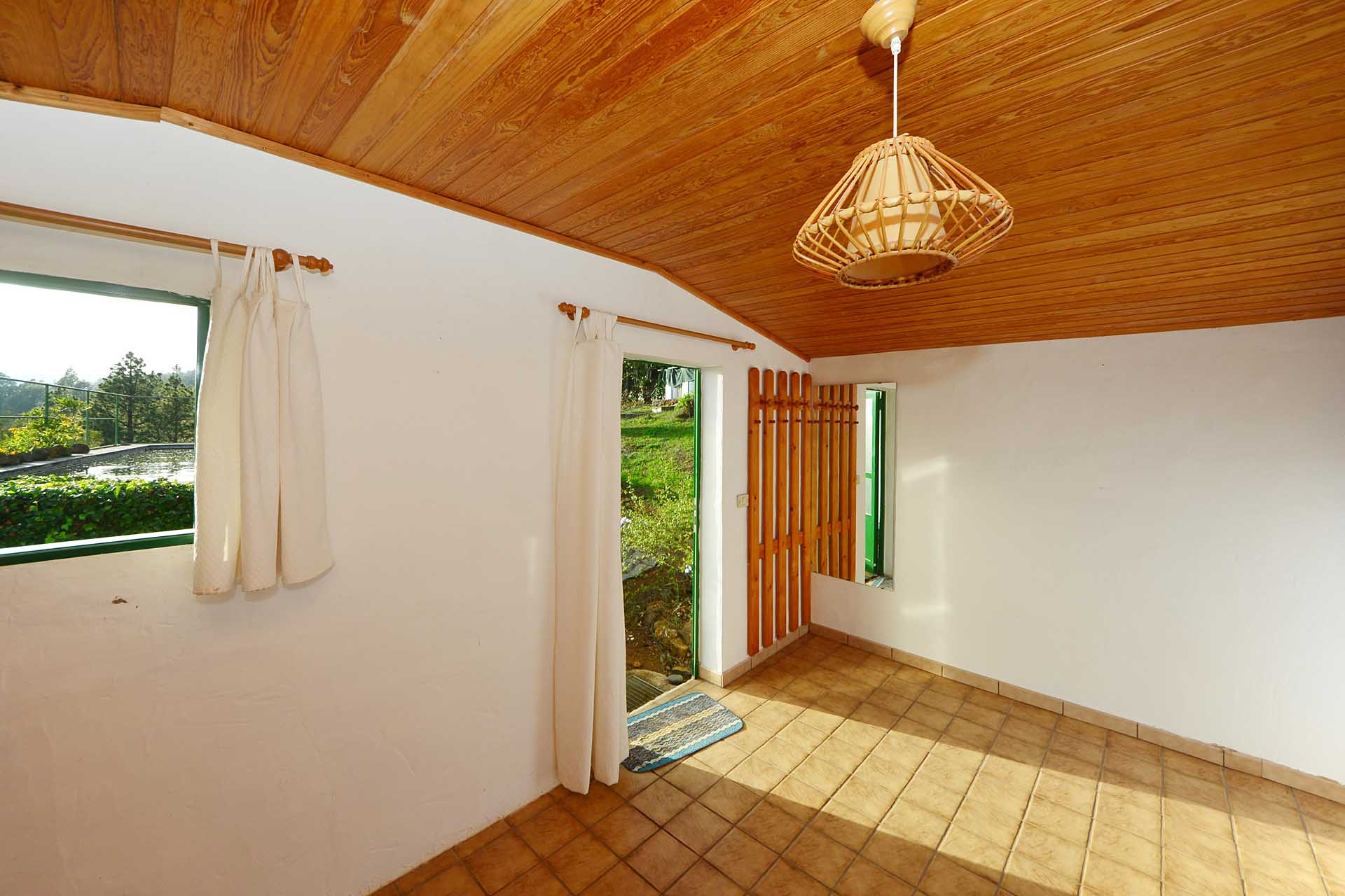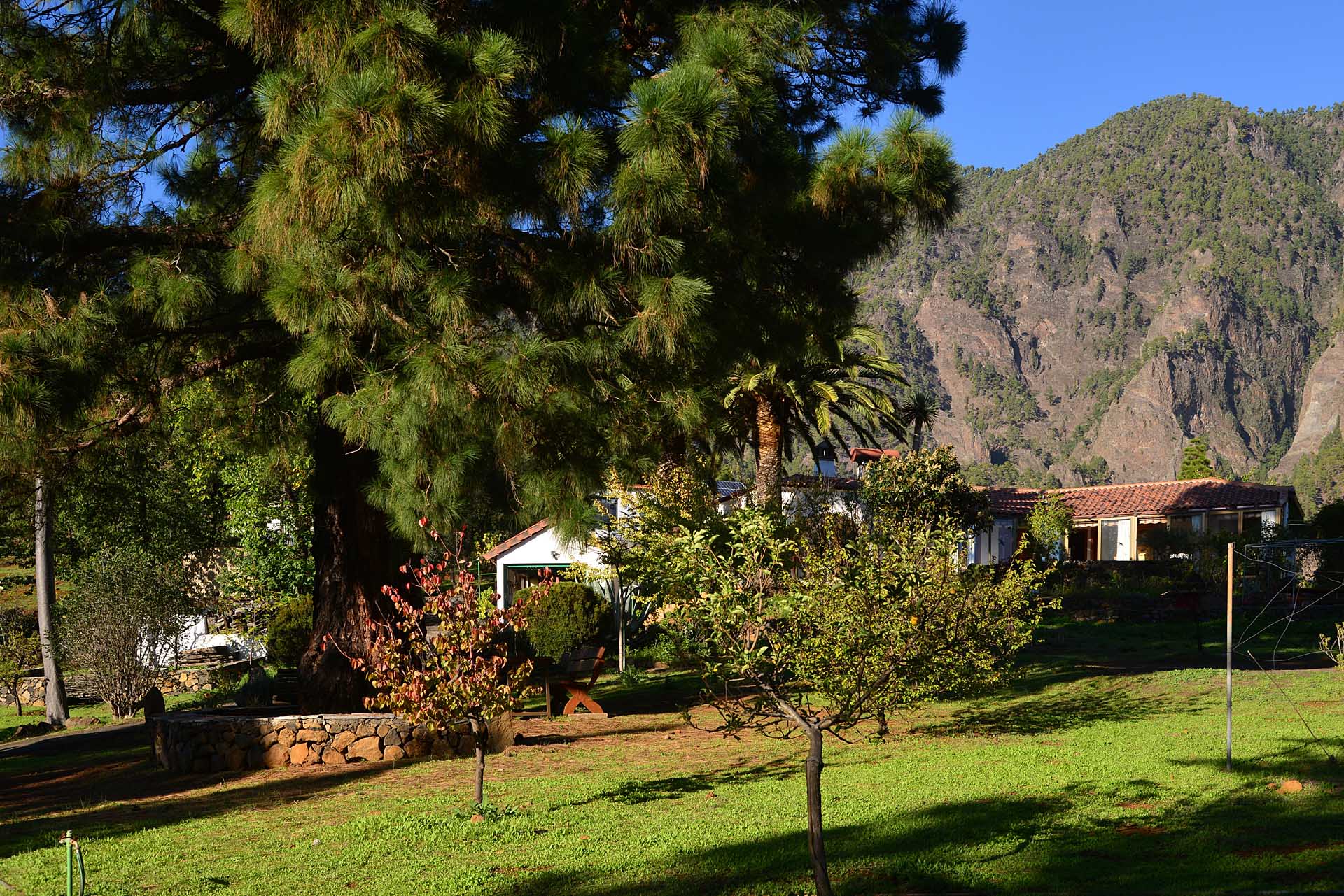 This finca is located in a uniquely beautiful landscape protection area on the edge of the national park "Caldera de Taburiente" on the southern slopes of the mighty Bejenado, well protected from the prevailing northeast winds in the midst of the wonderful pine forest and its incomparably fresh scent. The nearly 8.000 m² site was created partly park-like and located on a dead end. It houses a 200 m² area large residential house with large living room with fireplace, conservatory, kitchen, dining room, 2 bathrooms and 3 bedrooms just as a utility room.