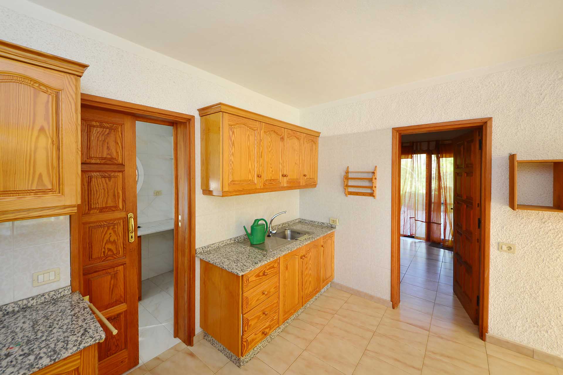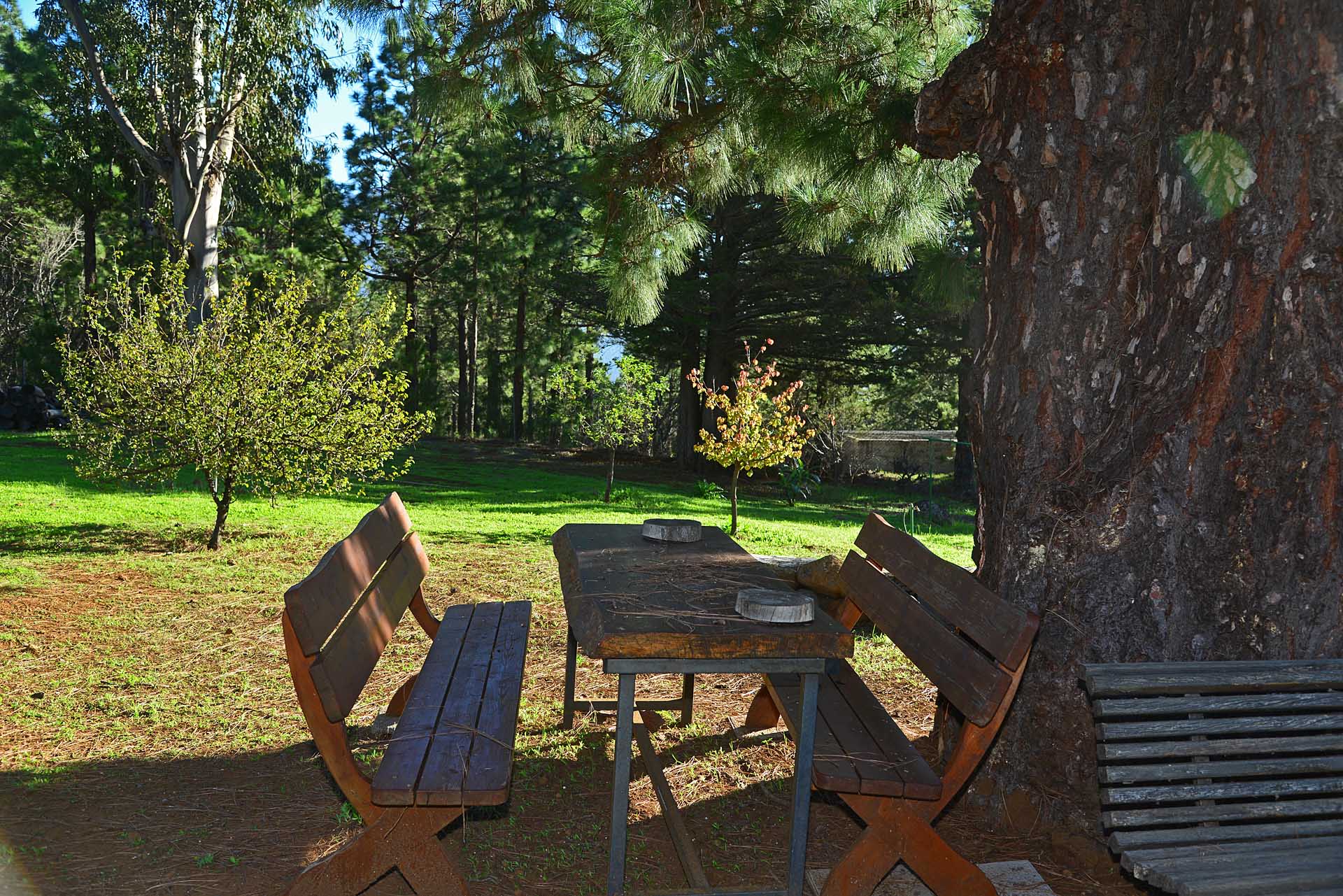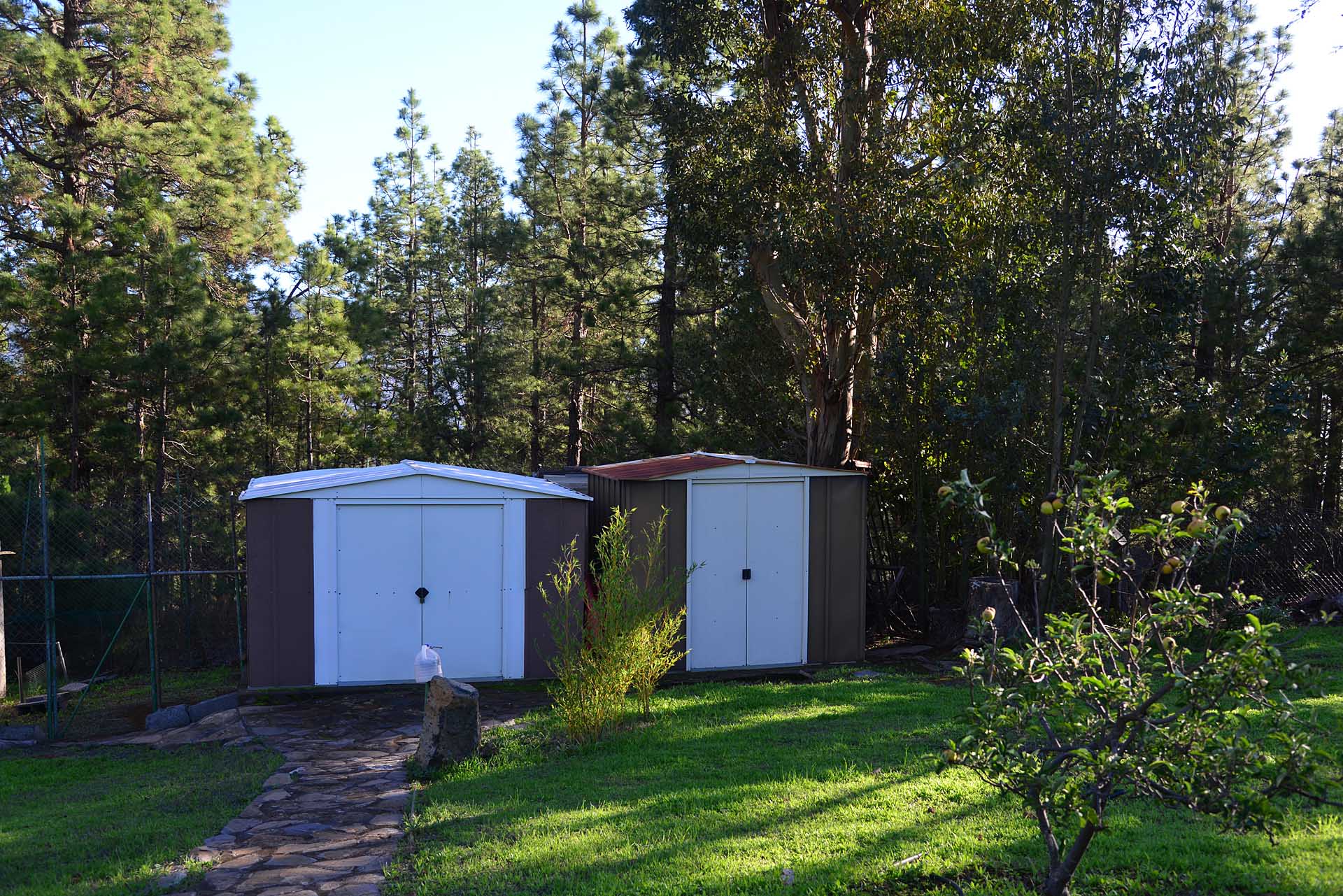The garden has been lovingly created with palm trees, spacious lawns, fruit and ornamental trees, vegetable fields and is completely fenced. Under a giant canary pine you find a rustic seat in the natural shade. A football pitch for children and young at heart is also not missing here as several sheds for garden tools, water tanks( made of stainless steel and a garage with approximately 24 m² of floor space.