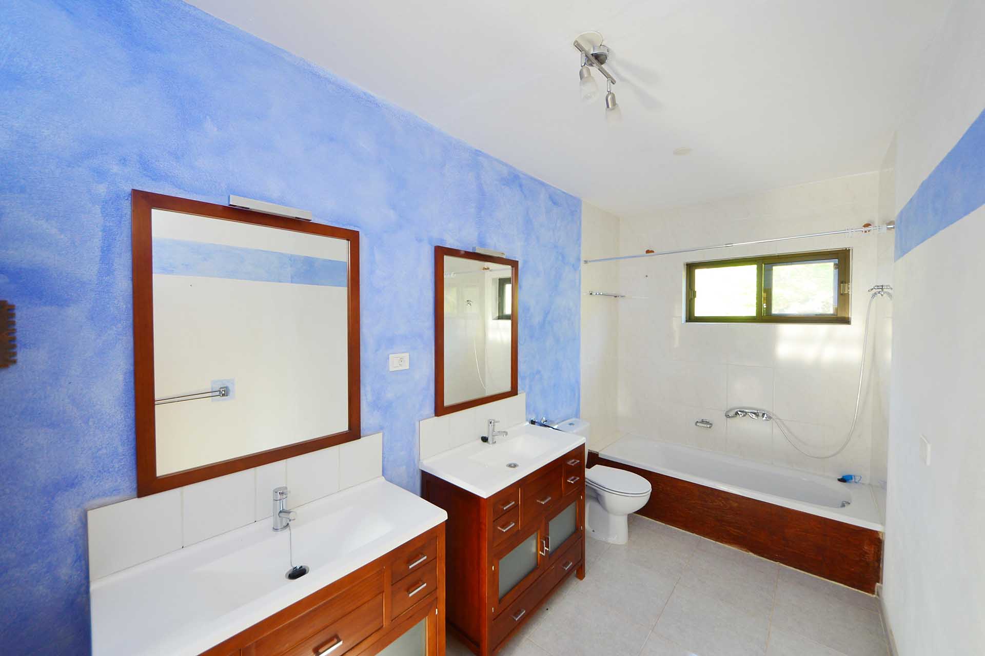 About 20 meters away is the approximately 45 m² floor large guest house with kitchen, bathroom and bedroom, next to a very large water tank, which is used by the owners as a bathing area