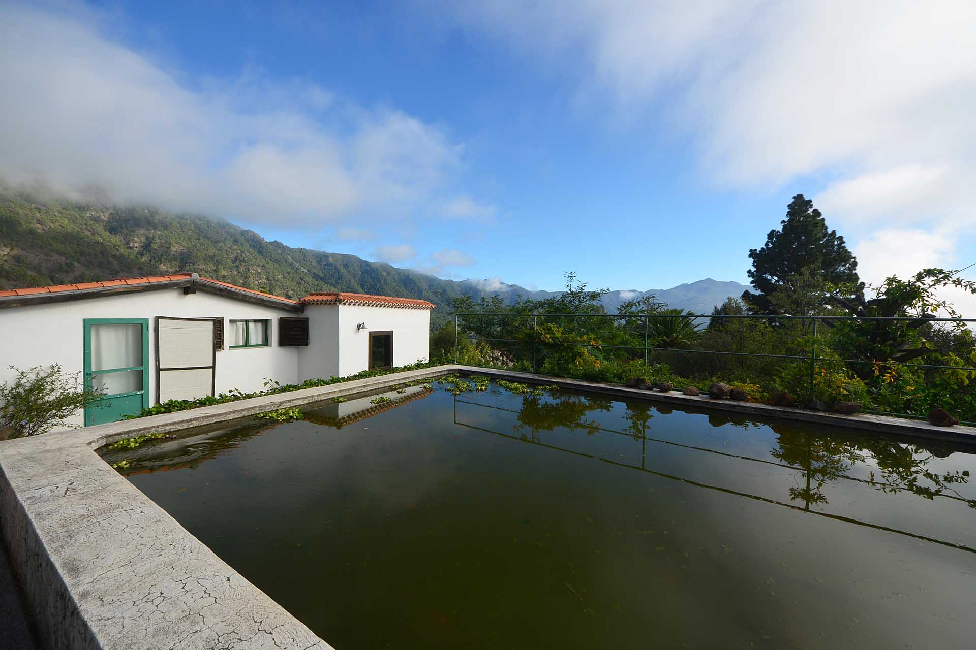 The water supply is provided by 6 so-called "water stocks" that are included in the purchase price which are also sufficient for watering the garden, as well as drinking water. It is gallery water from the Caldera in the best mineral water quality. The budget for the household requirements is stored in hygienic stainless steel tanks, the part for garden irrigation is in a 10 x 4,5 m large open water basin, which can be used as a natural swimming pool. The domestic water heating is also performed solar with gas support for emergencies.