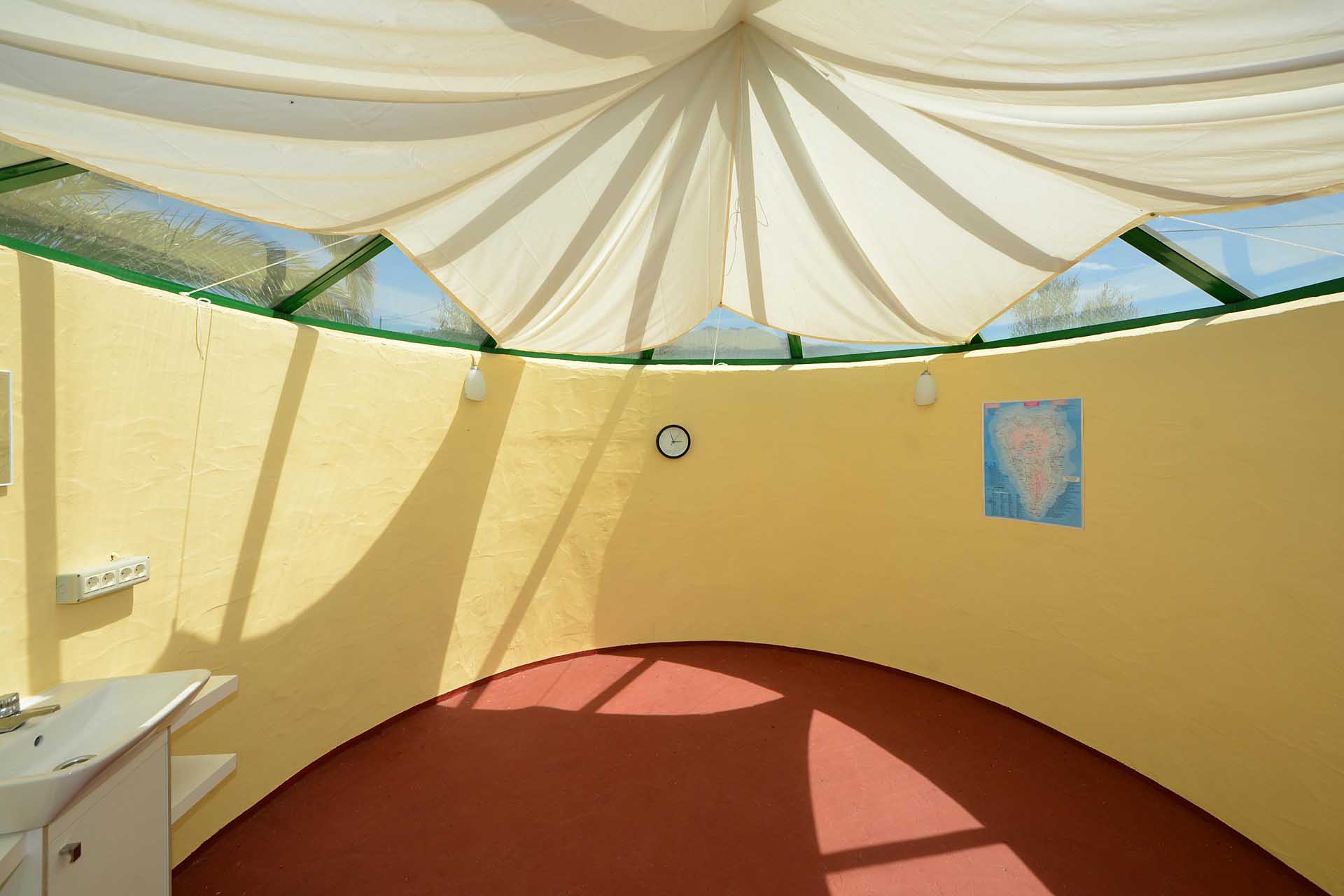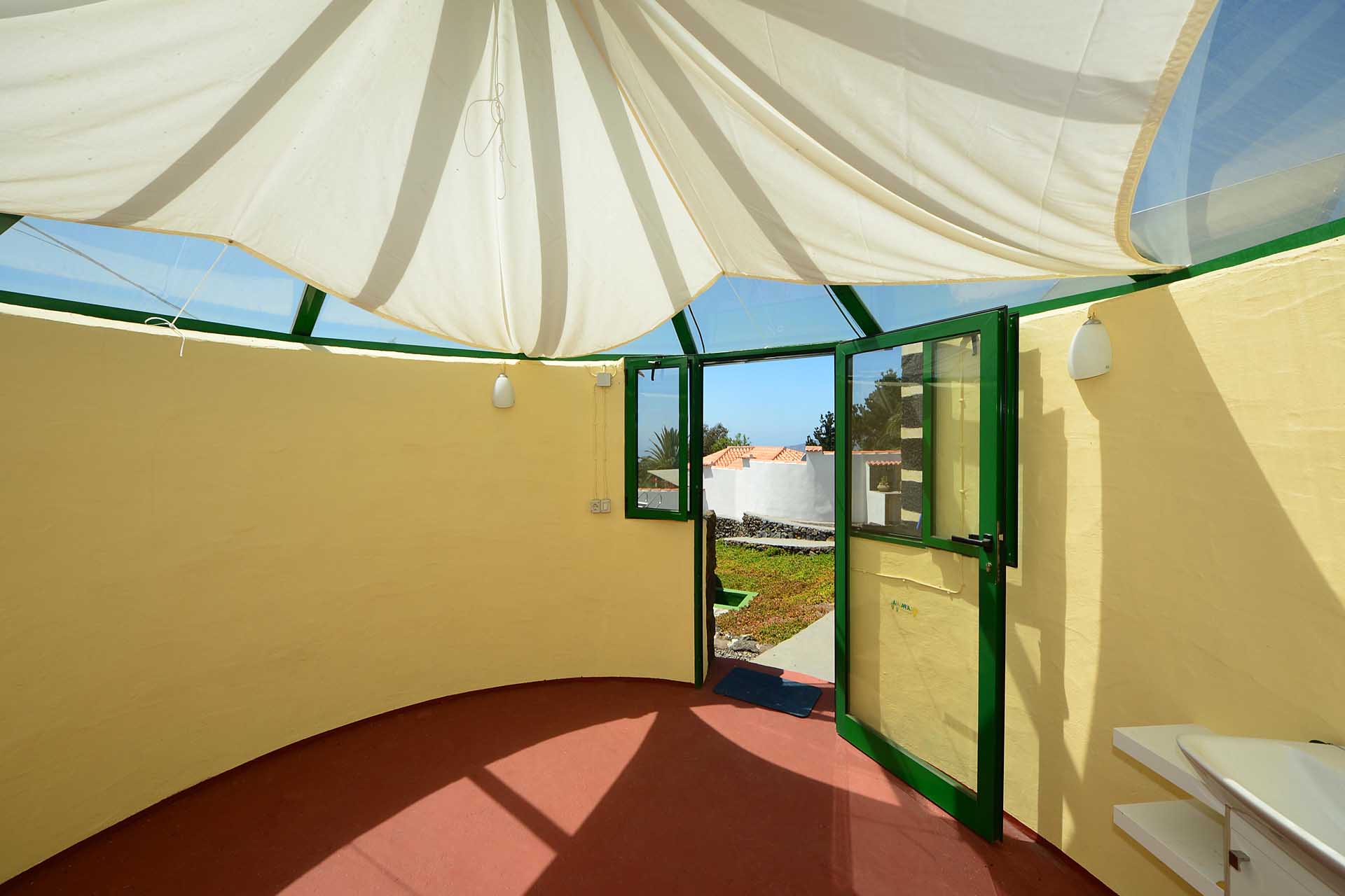 The house was renovated and extended in 2017 and is divided into a spacious and bright living room, a semi-open kitchen, a hallway, two bedrooms, a bathroom and a utility room. To the south there is a round, bright pavilion with a glass roof for painting or inviting guests.
