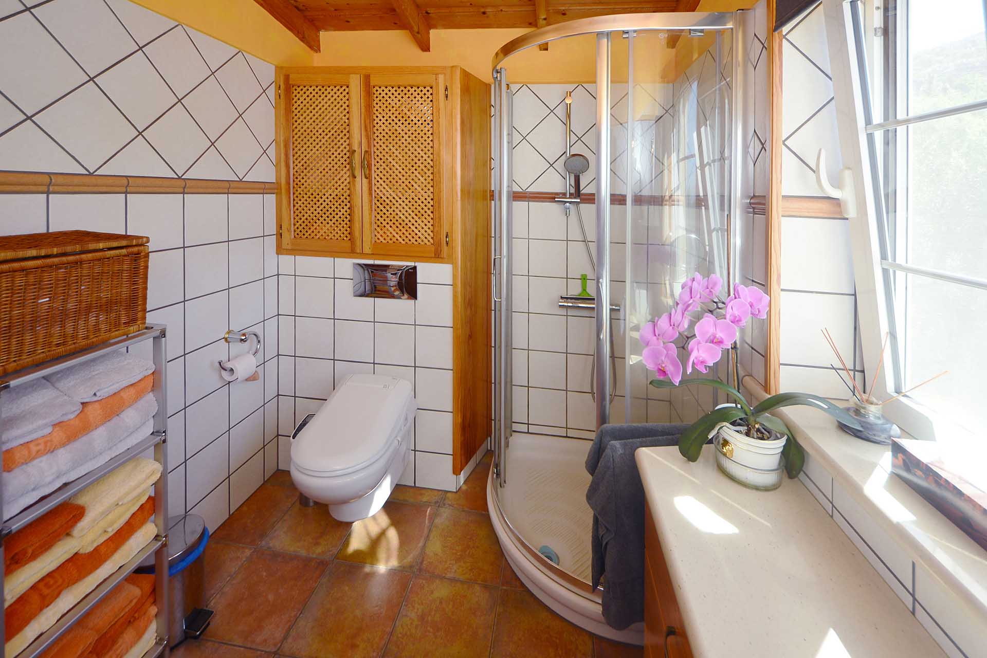 On the ground floor there is the main apartment with a spacious kitchen-cum-living-room with a wonderful sea view and comfortable, handcrafted woodwork. It gives access to a large covered terrace with a fantastic view of the Atlantic Ocean and the sunset over it, and a short walk by coffee cup or wine glass. From the kitchen-living room you reach via a small corridor also directly to the east terrace for the first tea or coffee in the morning sun, as well as the master bedroom, with a view, which looks for its-same and a small balcony. You can also reach the smaller bedroom or study (if this still has to be) and a beautifully designed bathroom, as well as a small utility room. What more do you need?