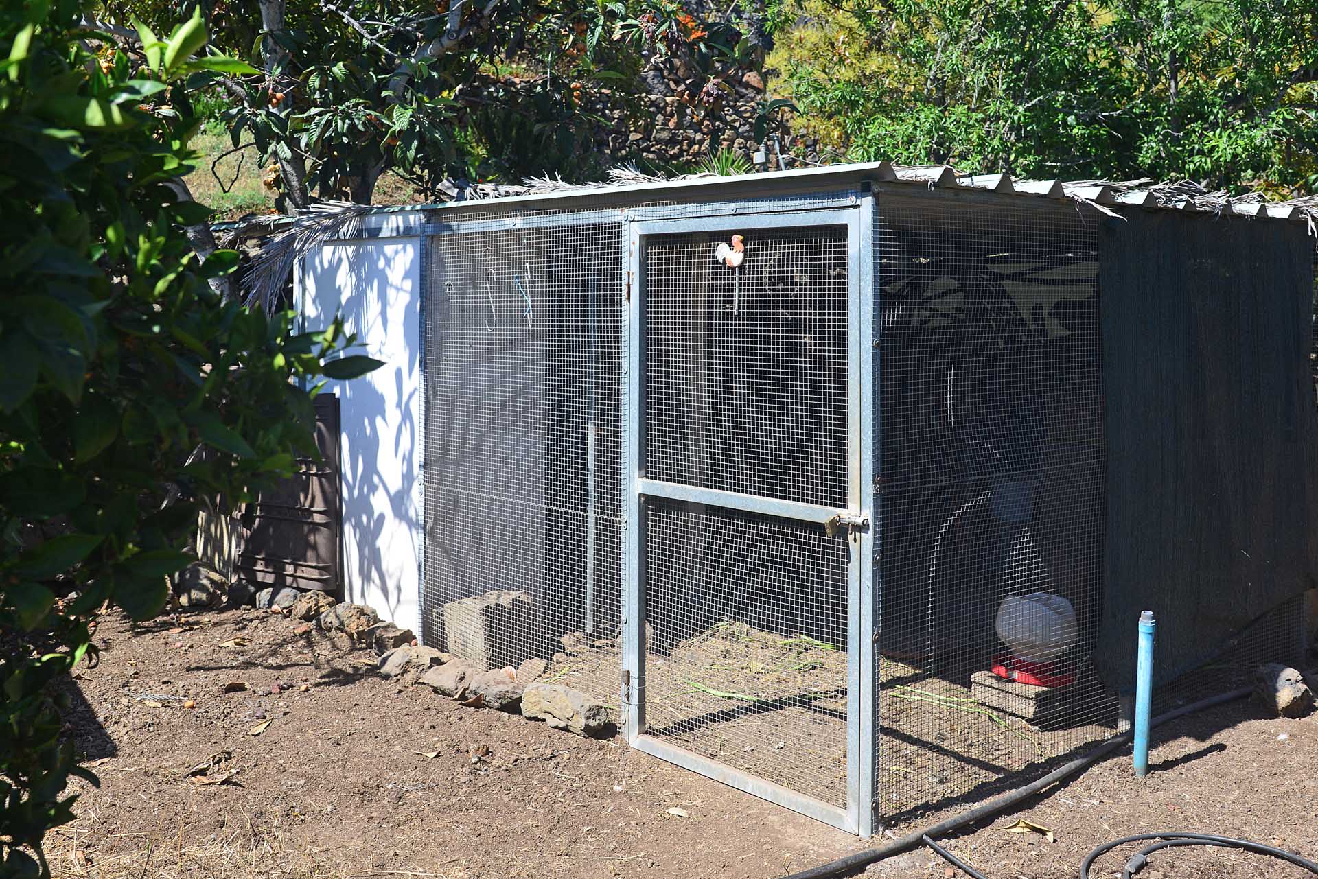The garden was well developed with paths and already well bear fruit trees, palms and ornamental plants planted. Fancy a fresh breakfast egg? Depending on your negotiating skills, the chickens can be taken over in the hen house on the lowest terrace.