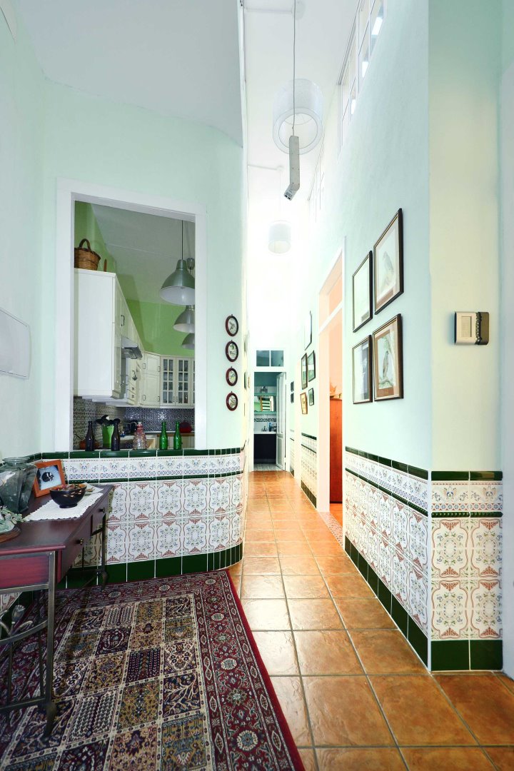 Via a representative staircase you reach the first floor, which contains a semi-open kitchen, a light-flooded corridor, a bright dining room with a small balcony and stylish stained-glass decoration, the master bedroom with large double-sided windows, another bright bedroom and a bathroom.