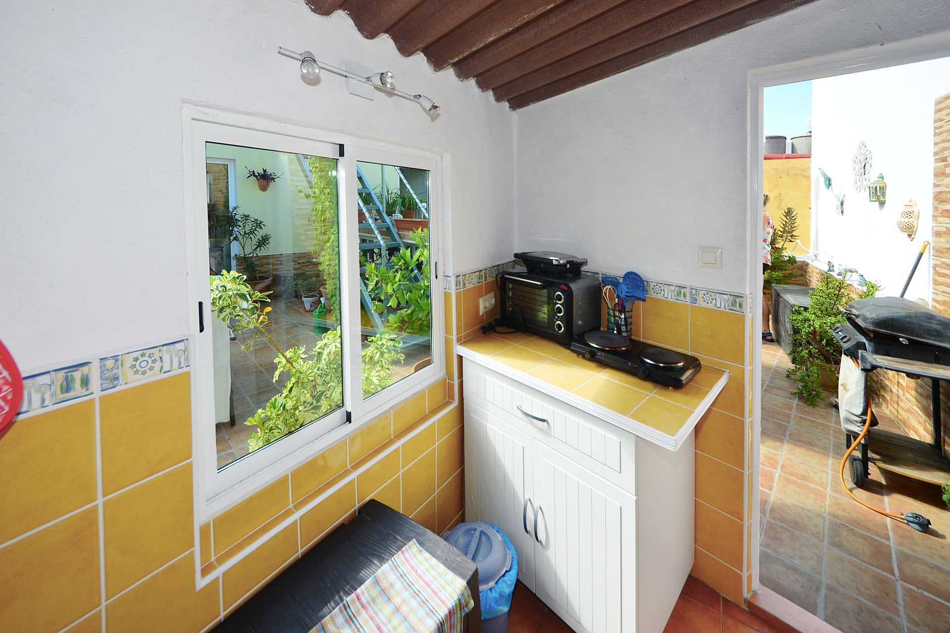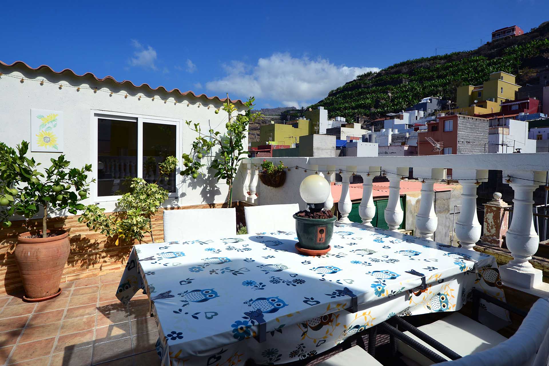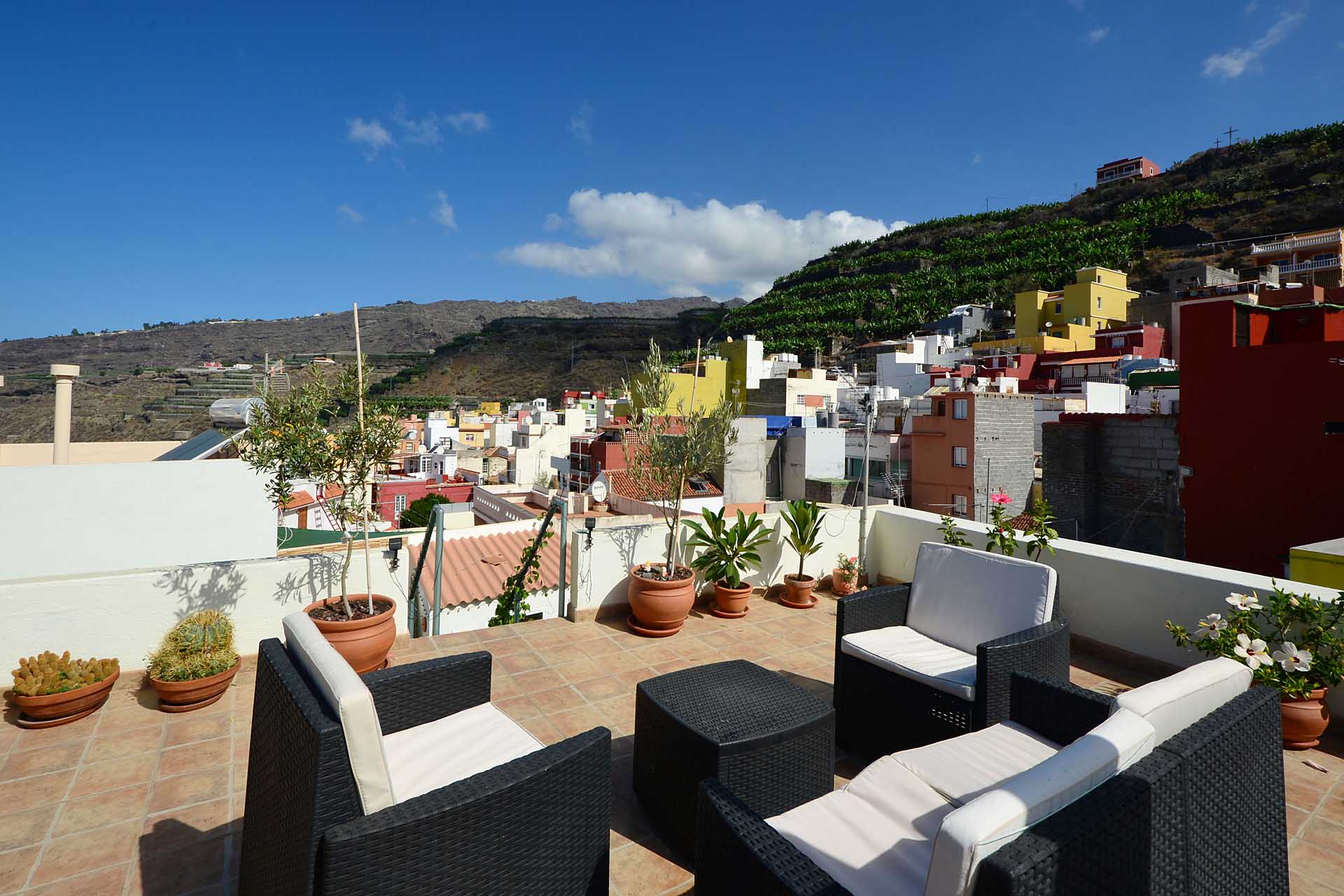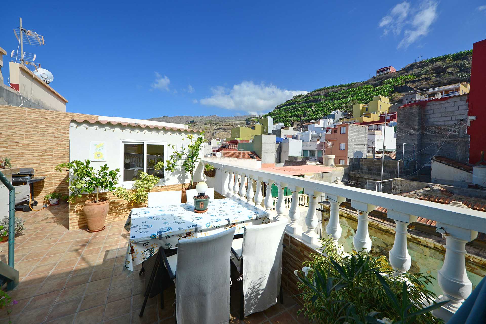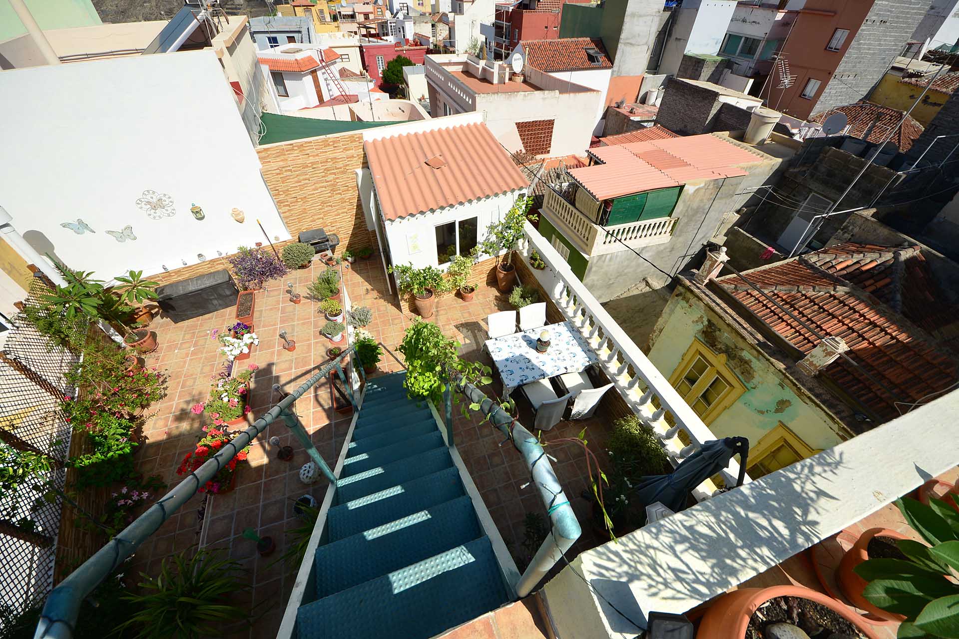 On the second floor you reach the second living room and a spacious roof terrace with the typical light dome of this era, which gives the house its bright ambience, another small kitchen/ laundry room and the staircase to the roof terrace of the third floor. From here you have a wonderful panoramic view over the winding alleys of the old town of Tazacorte to the Atlantic Ocean and the surrounding mountains.